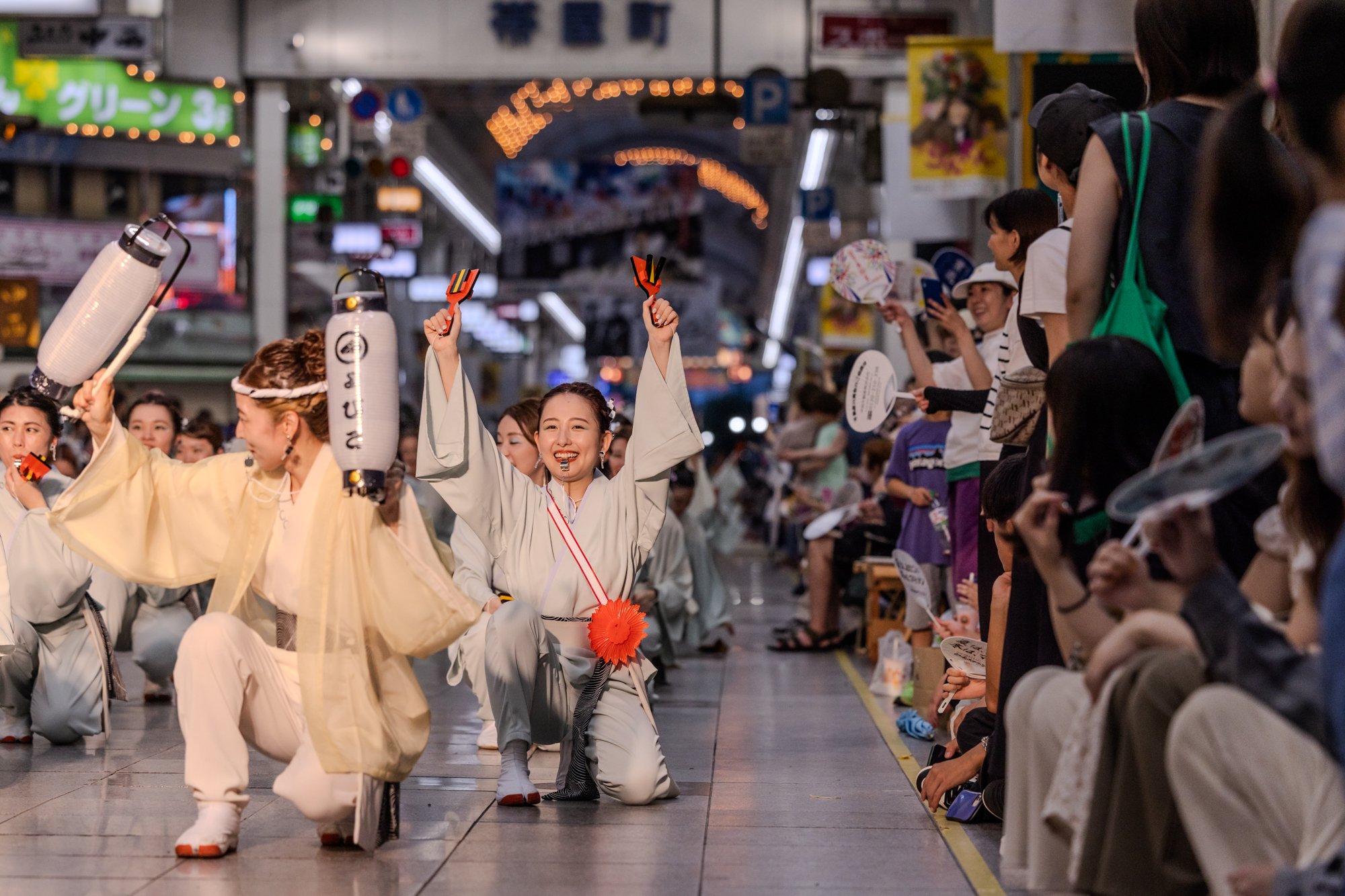 그중에서도 제일 추천은 「오비야마치 연무장」고치 시내 중심부의 번화가에 있는 550m의 오비야마치 아케이드내를 약 4분 간격으로 다음부터 차례로 팀이 춤을 춥니다.아케이드내에 음악이 울려 퍼지는 가운데, 가까운 거리에서 춤자의 열기를 느낄 수 있어, 부채 지참으로 춤자를 아오아 주시면, 토비키리의 미소를 돌려줍니다.
