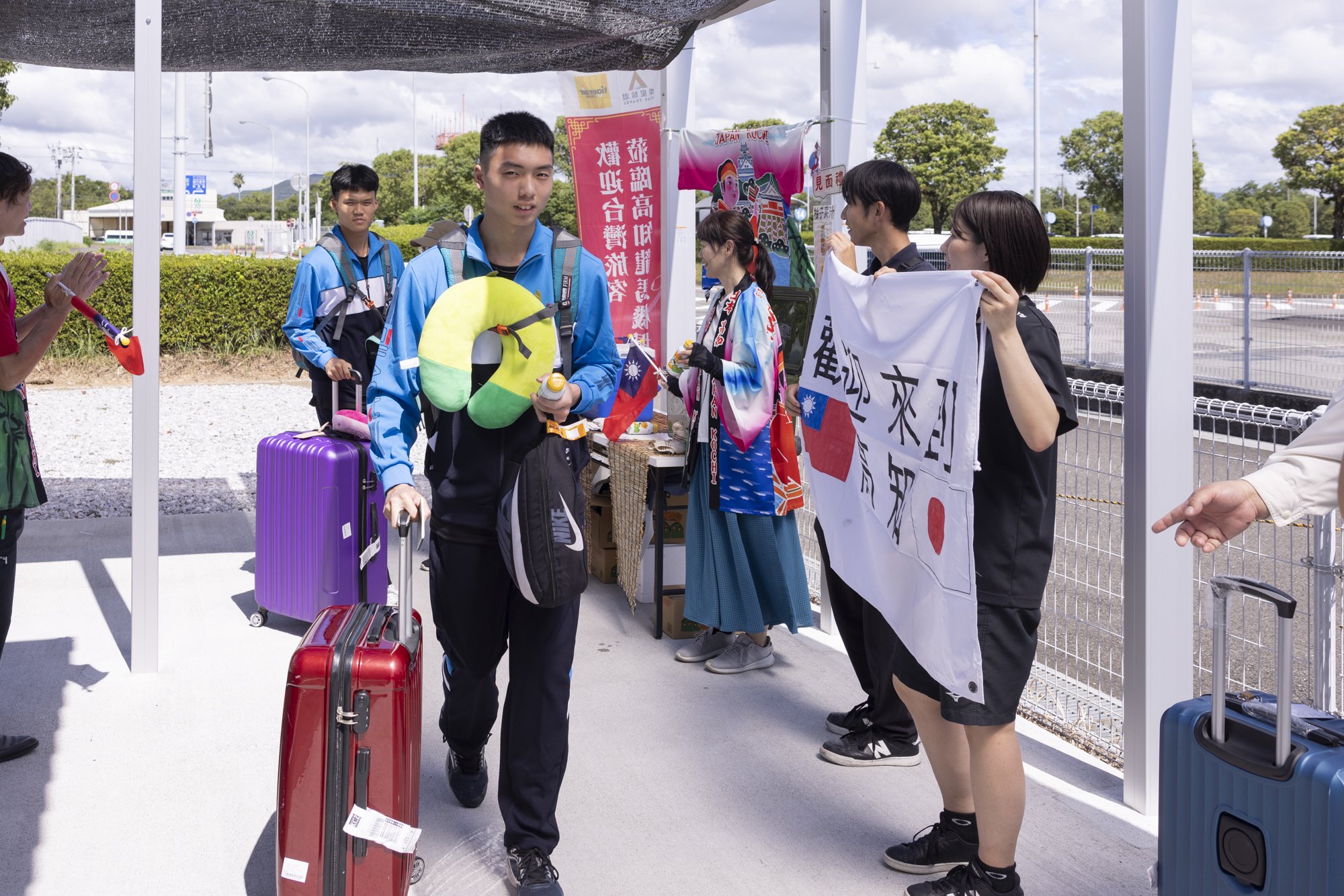 선수와 감독들은 정기 전세기를 이용해 고치 료마 공항에 도착.공항에서는 고치 공과대학의 학생을 비롯한 관계자가 일행을 맞이했습니다.