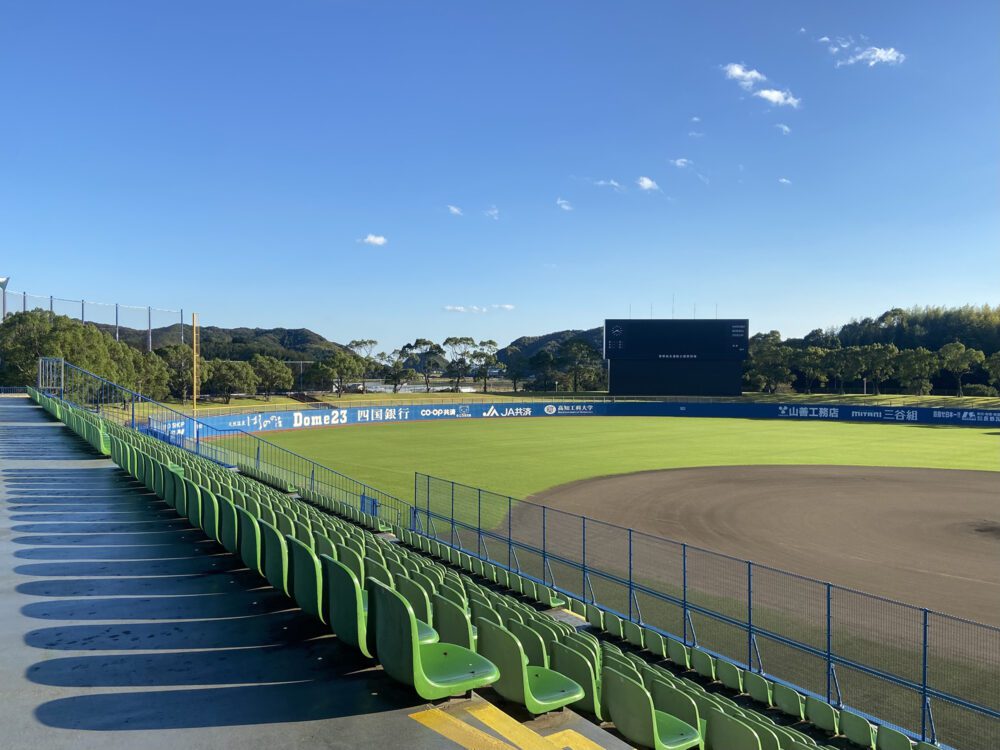 일년 내내 녹색 잔디가 정비되어 스코어보드·방송석·관객석도 완비.프로의 공식전이 가능한 설비입니다.프로야구 캠프 때에는 많은 팬들이 관람하러 달려가고 있습니다.