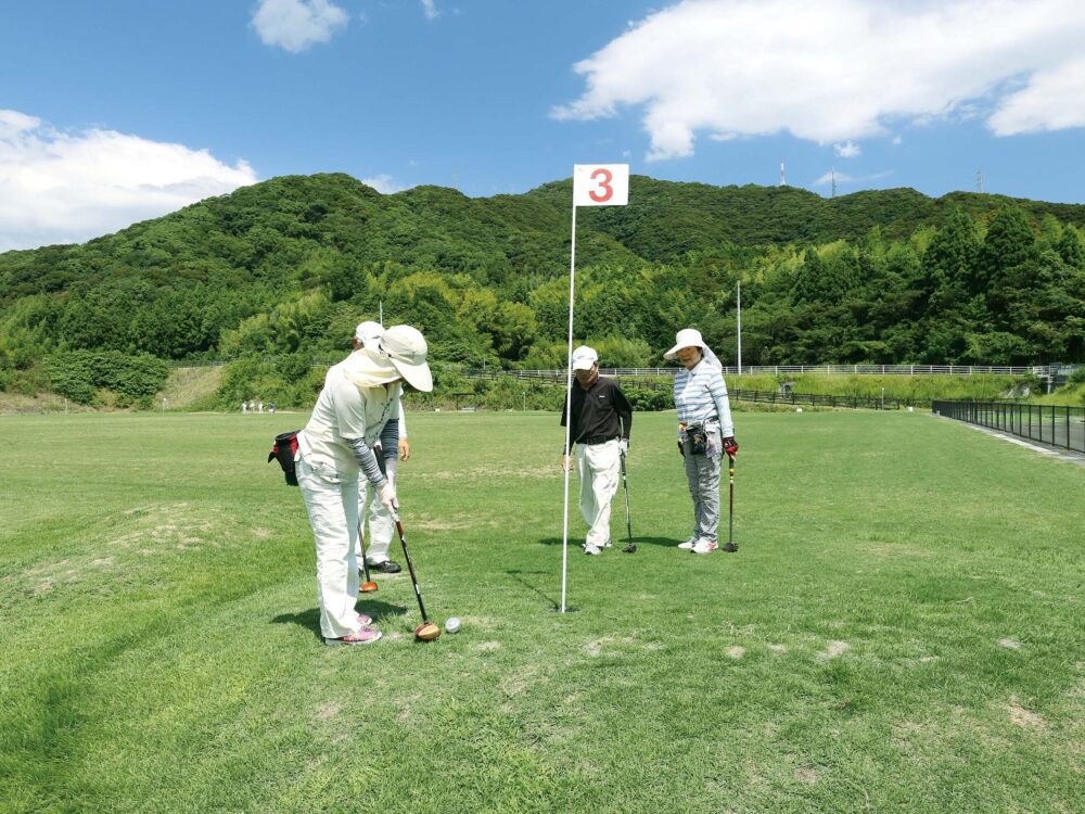 다목적 광장을 이용한 9홀의 「광장 코스」와, 산의 경사면이나 골짜기를 이용한 9홀의 「림간 코스」의 총 18홀을 갖춘, 본격적인 파크 골프 시설입니다.