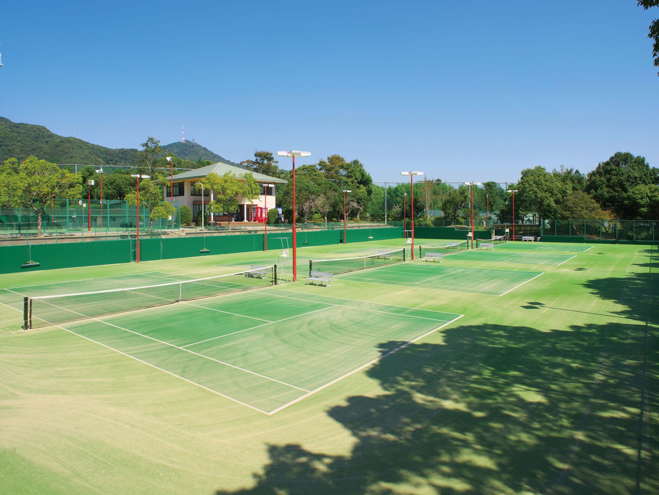 전천후형 모래가 들어간 인공잔디를 채용.연·경식의 어느 쪽도 사용 가능하고, 16면의 테니스 코트에 더해 클럽 하우스도 부속하고 있어 전국 대회 등의 큰 대회도 개최 가능.야간 이용 가능한 코트도 있어, 일반을 포함해 날마다 많은 분에게 이용되고 있습니다.