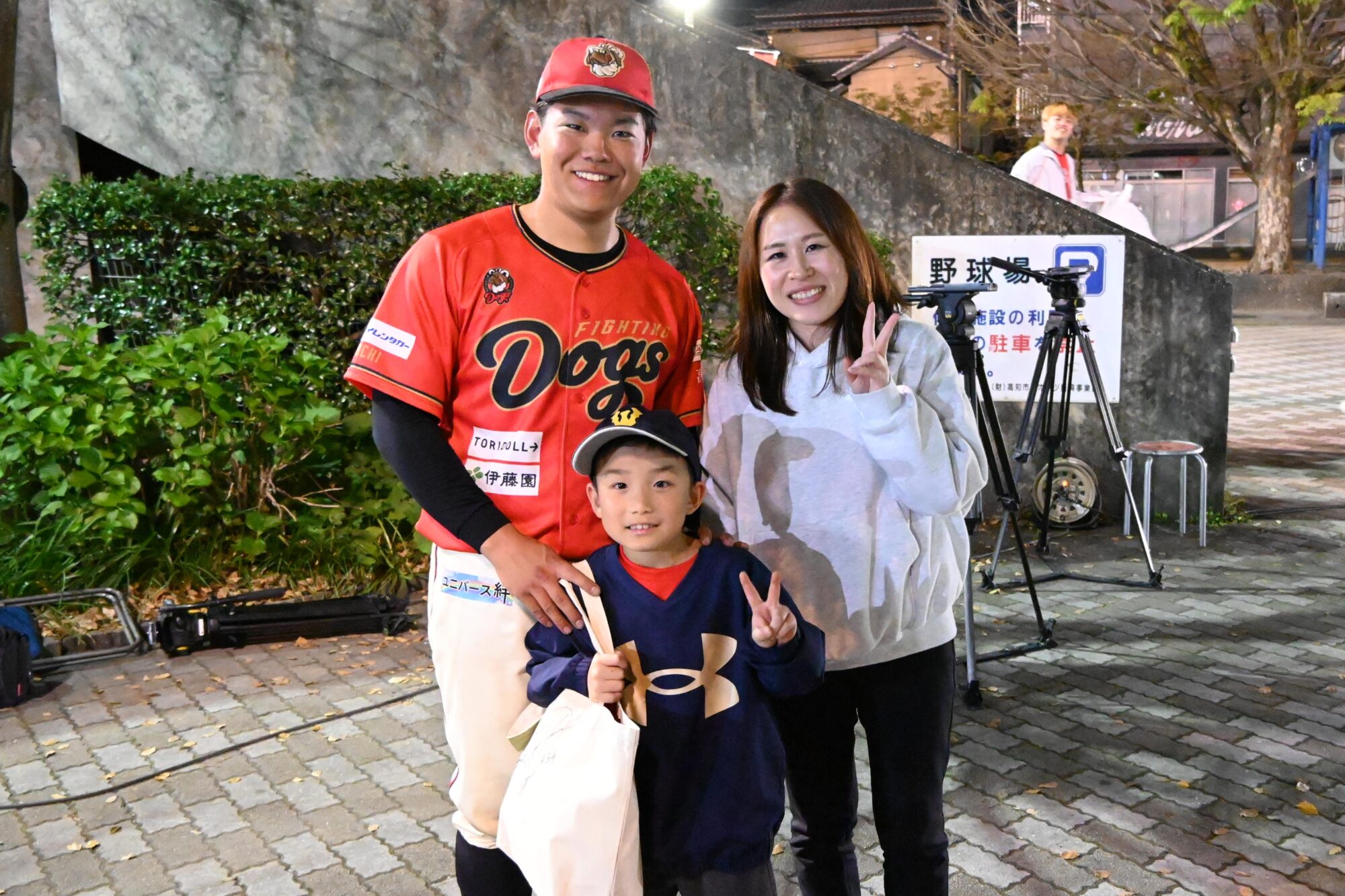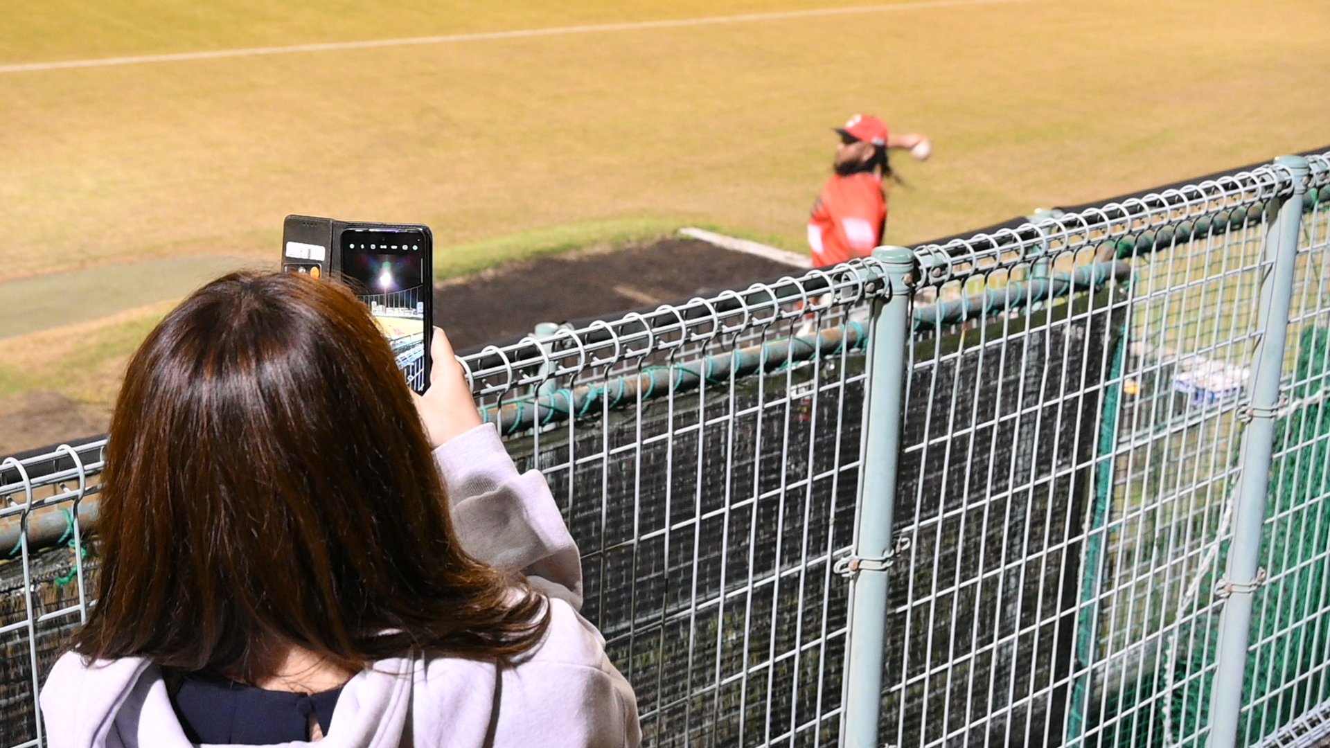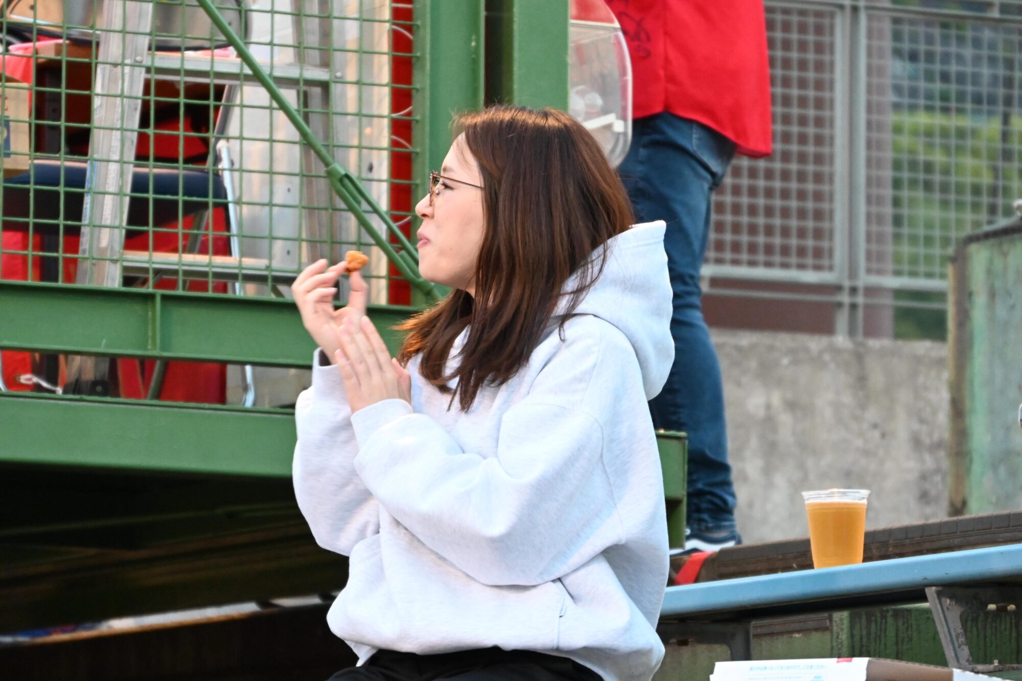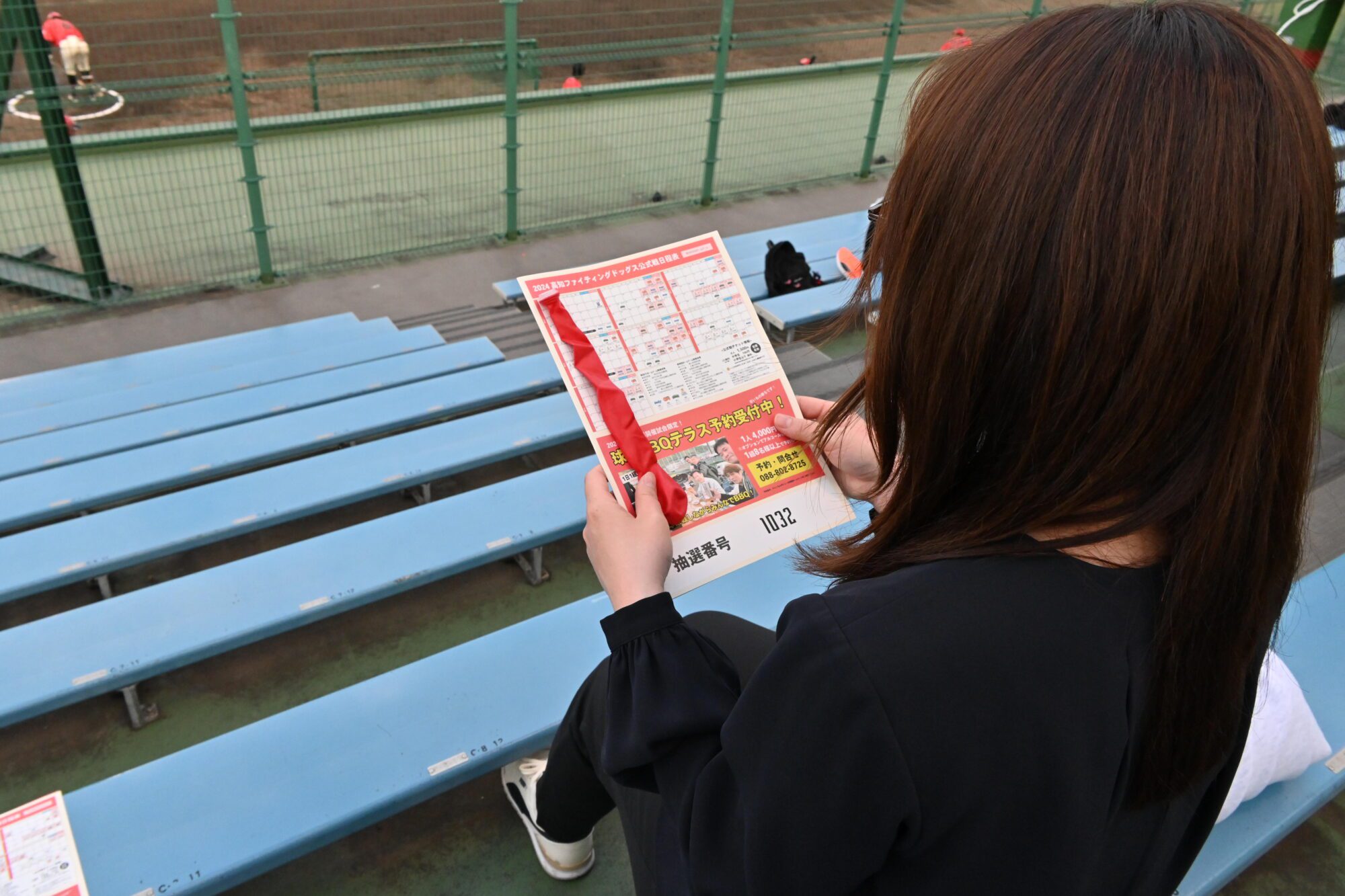 응원의 한중에도, 「캡틴의 산포라시나 선수예요」 「2023년 MVP의 사카구치 다이스케 선수입니다」라고, 신경이 쓰이는 선수의 체크에도 부족합니다.