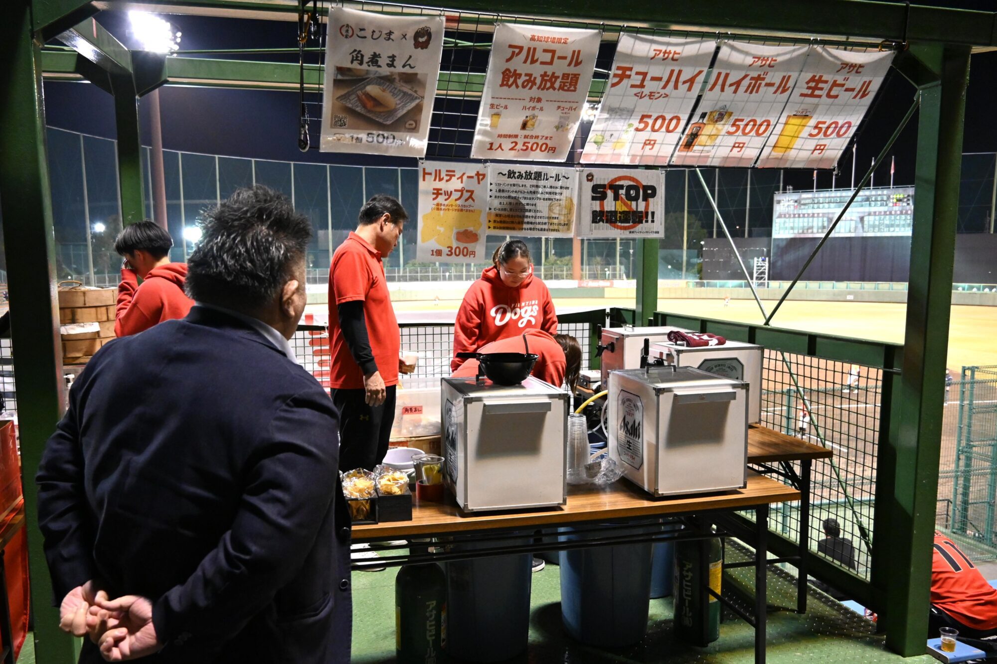 시합 사이에는, 도그스 개에 의한 퍼포먼스나 선수가 던지는 높은 플라이(하이볼)를 도전자가 캐치할 수 있으면 하이볼이 싸게 되는 하이볼 타임 등, 회장의 여러분을 질리지 않는 궁리가 되어 있었습니다.