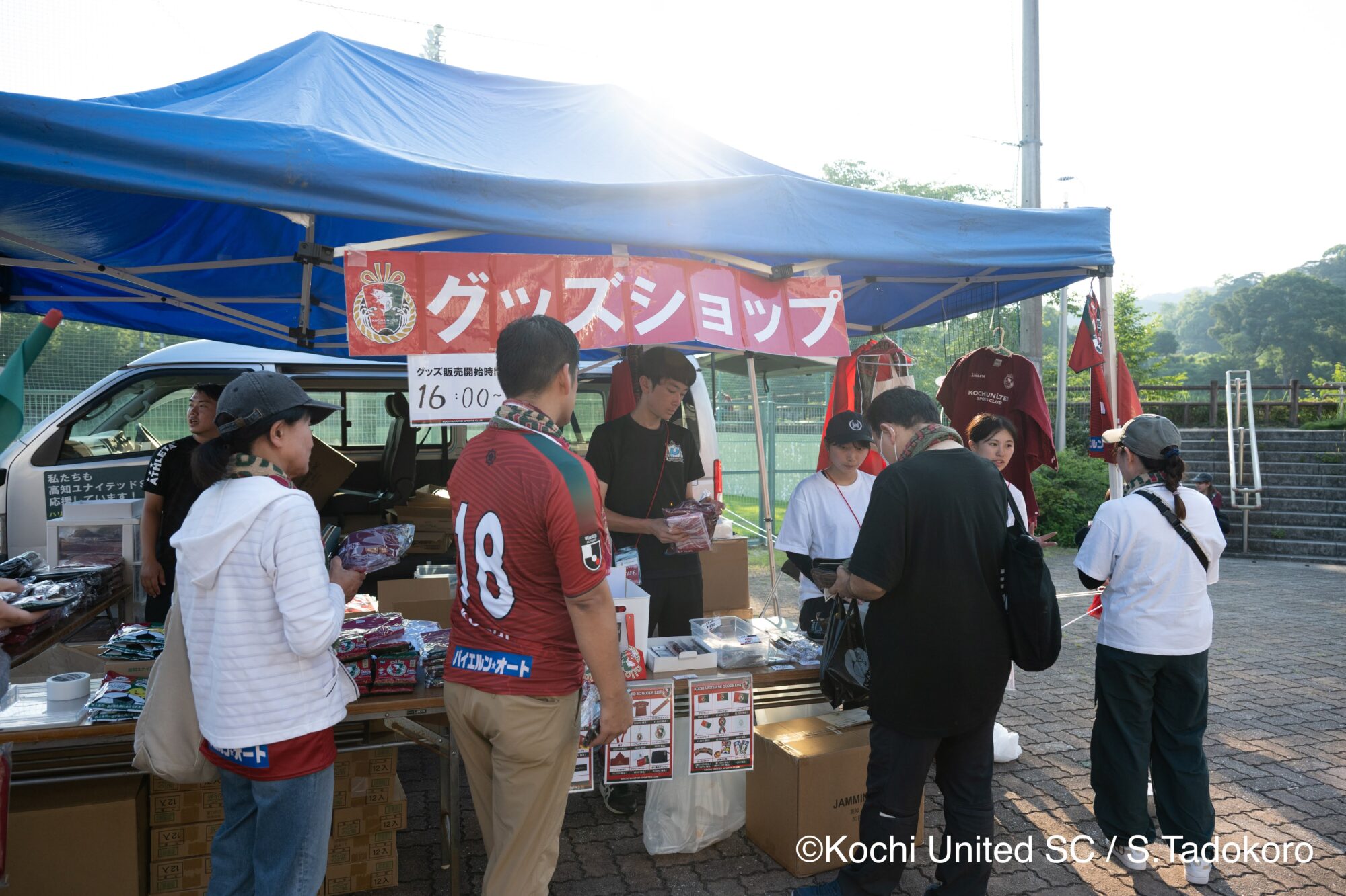고치 유나이티드 SC의 팀 컬러인 「붉은 것」을 익혀 가는 것도 추천유니폼이나 타월 머플러, 캡 등의 팀 공식 상품도 회장에서 캐시리스 결제로도 구입 가능