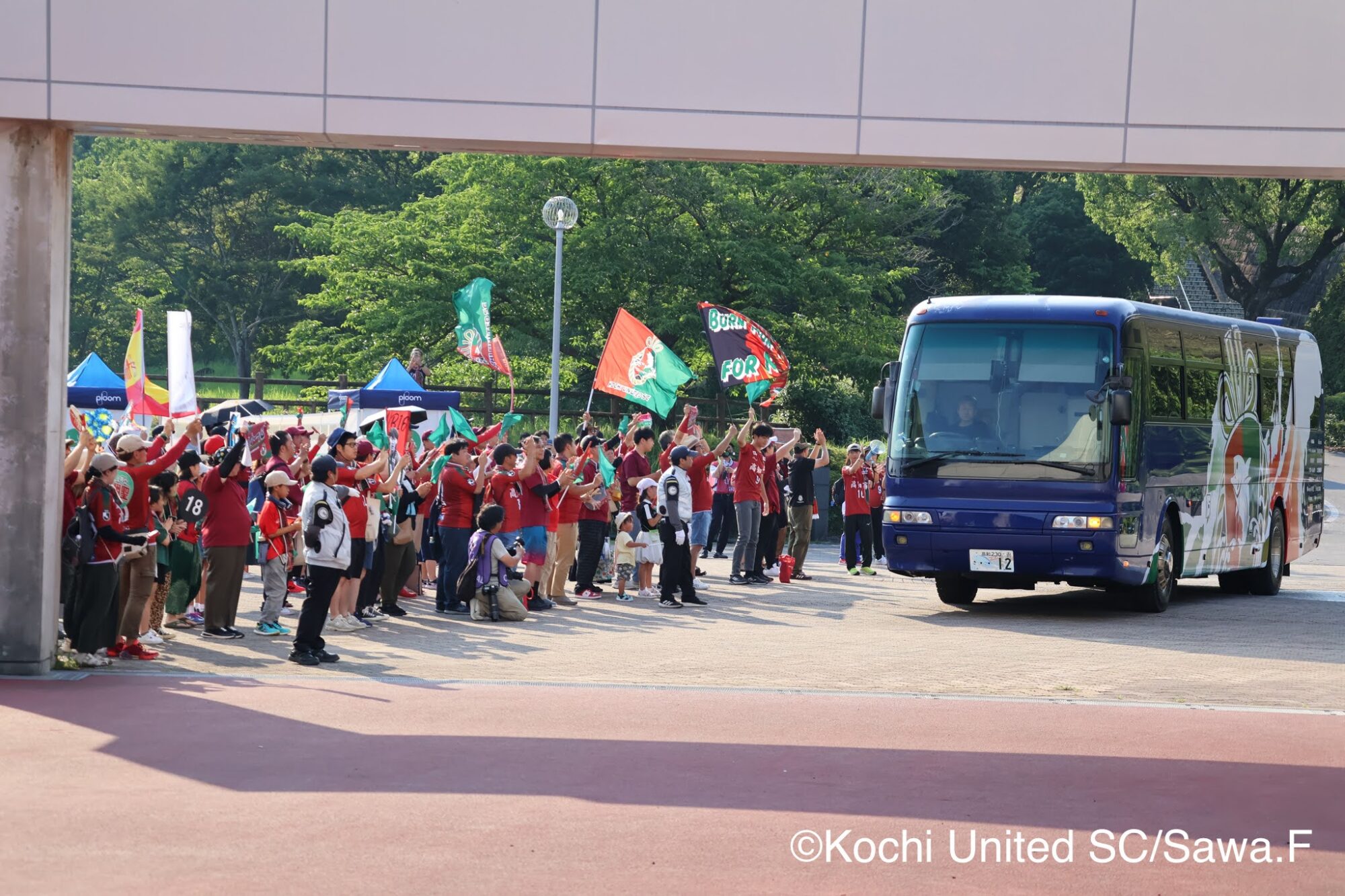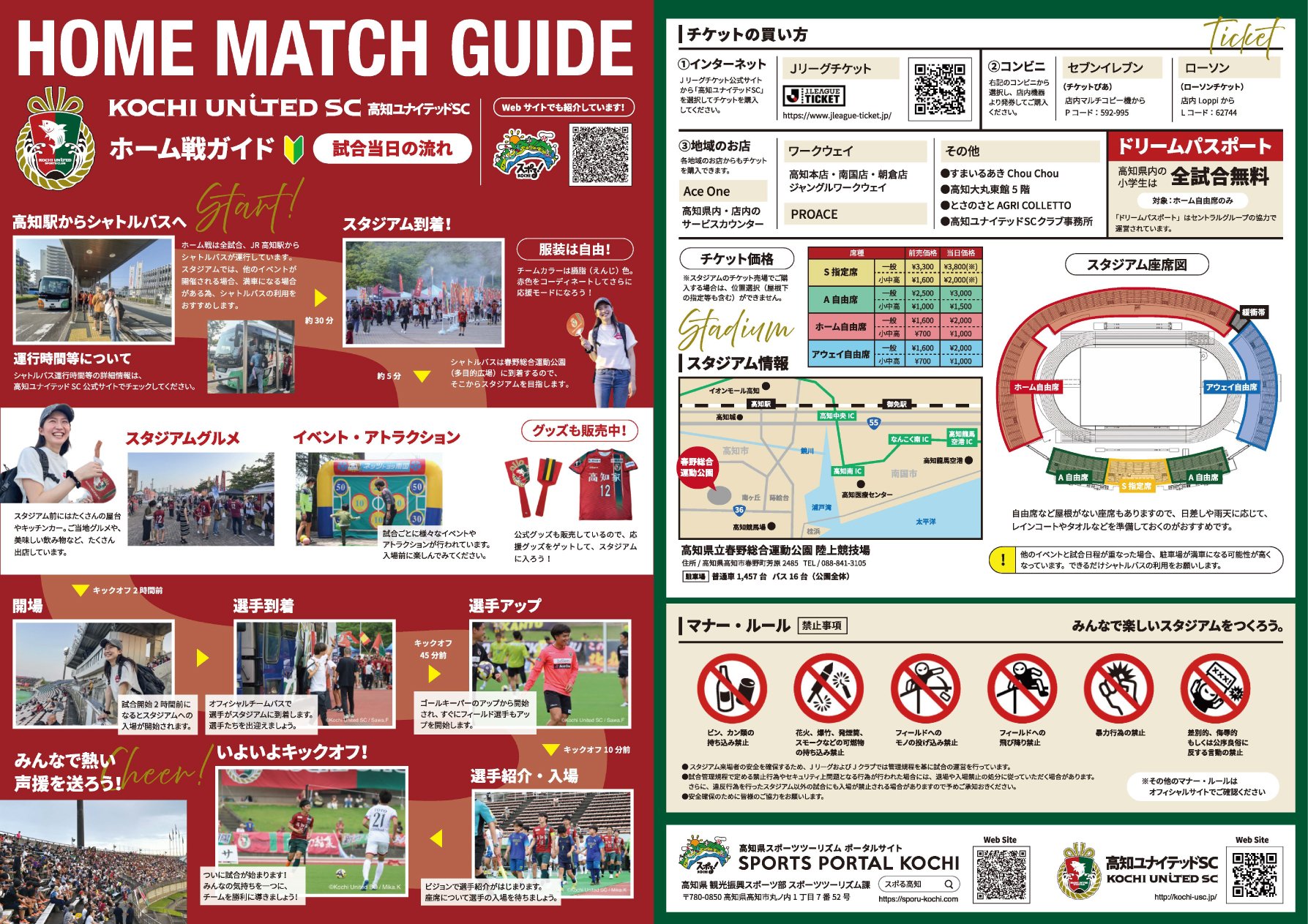 - 전 시합 고치역에서 임시 셔틀 버스 운행 있음.티켓은 온라인 또는 당일 버스 승강장에서 구입 가능.(자세한 내용은 공식 페이지내 NEWS에서)