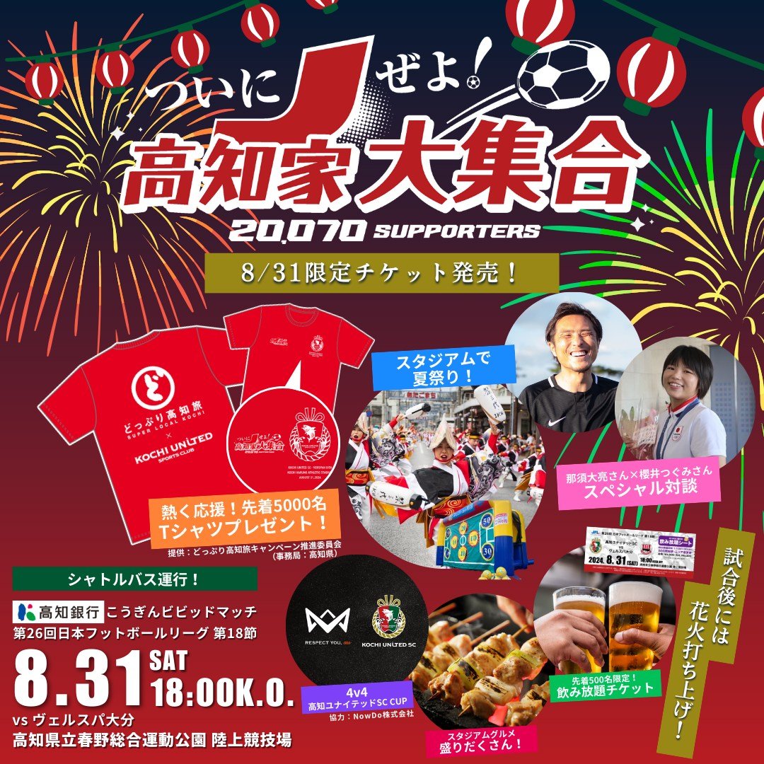 8월 31일 이벤트 정보 가득!고치 유나이티드 SC vs 베르스파 오이타 (제26회 JFL 18절)