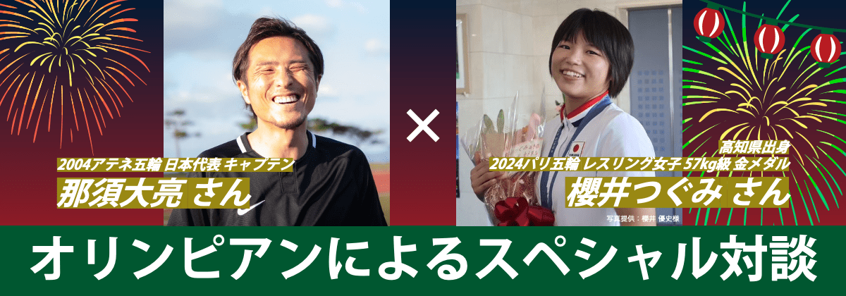 2004 아테네 올림픽에서 축구 일본 대표를 캡틴으로 이끈 나스 오료씨와 2024 파리 올림픽에서 레슬링 여자 57kg급으로서 출전해, 고치현 출신 선수로서 92년만의 금메달을 획득한 사쿠라이 츠구미씨에 의한 스페셜 대담이 결정되었습니다.