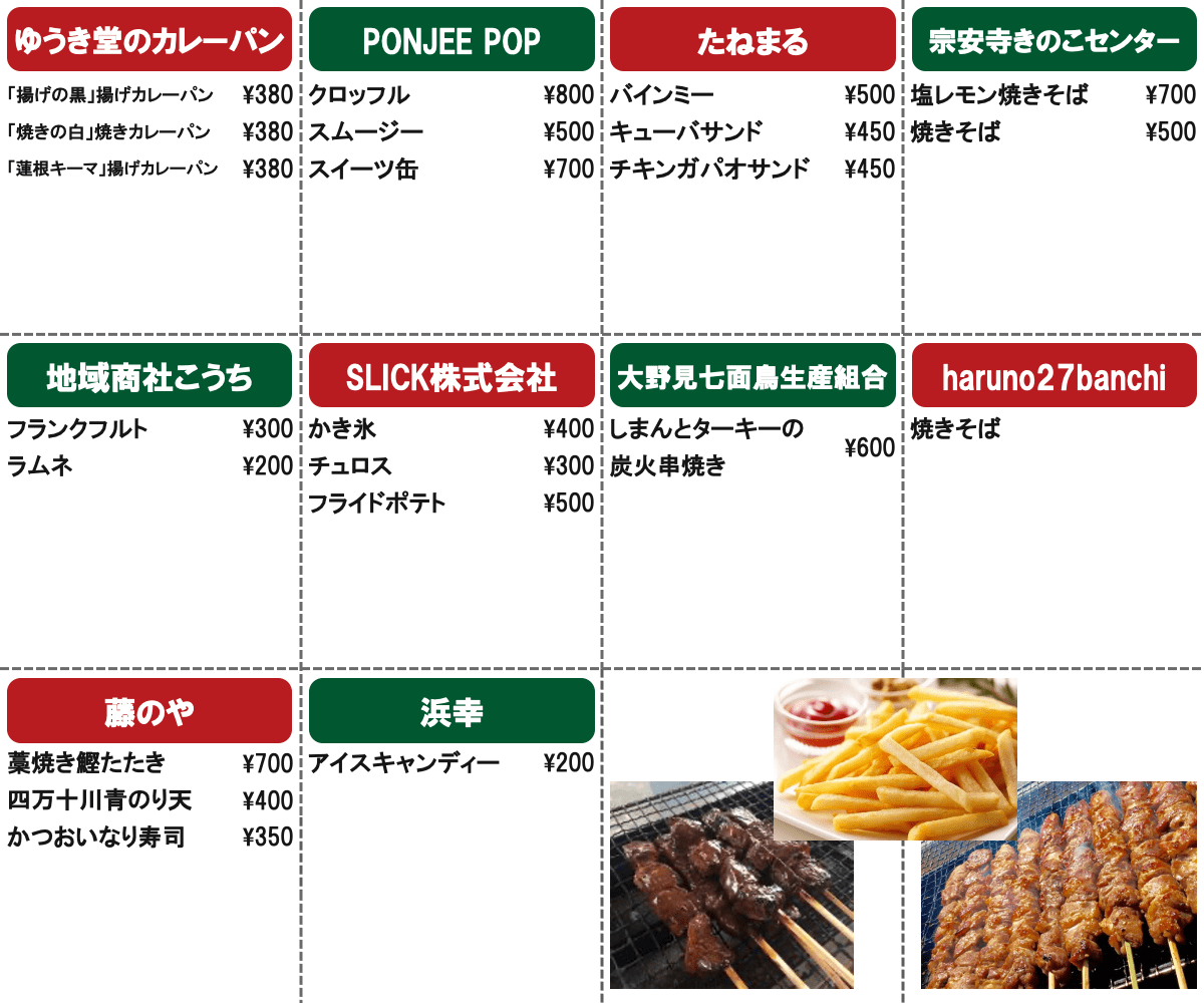 고치만의 음식 부스는 방문자 여러분을 대접합니다.