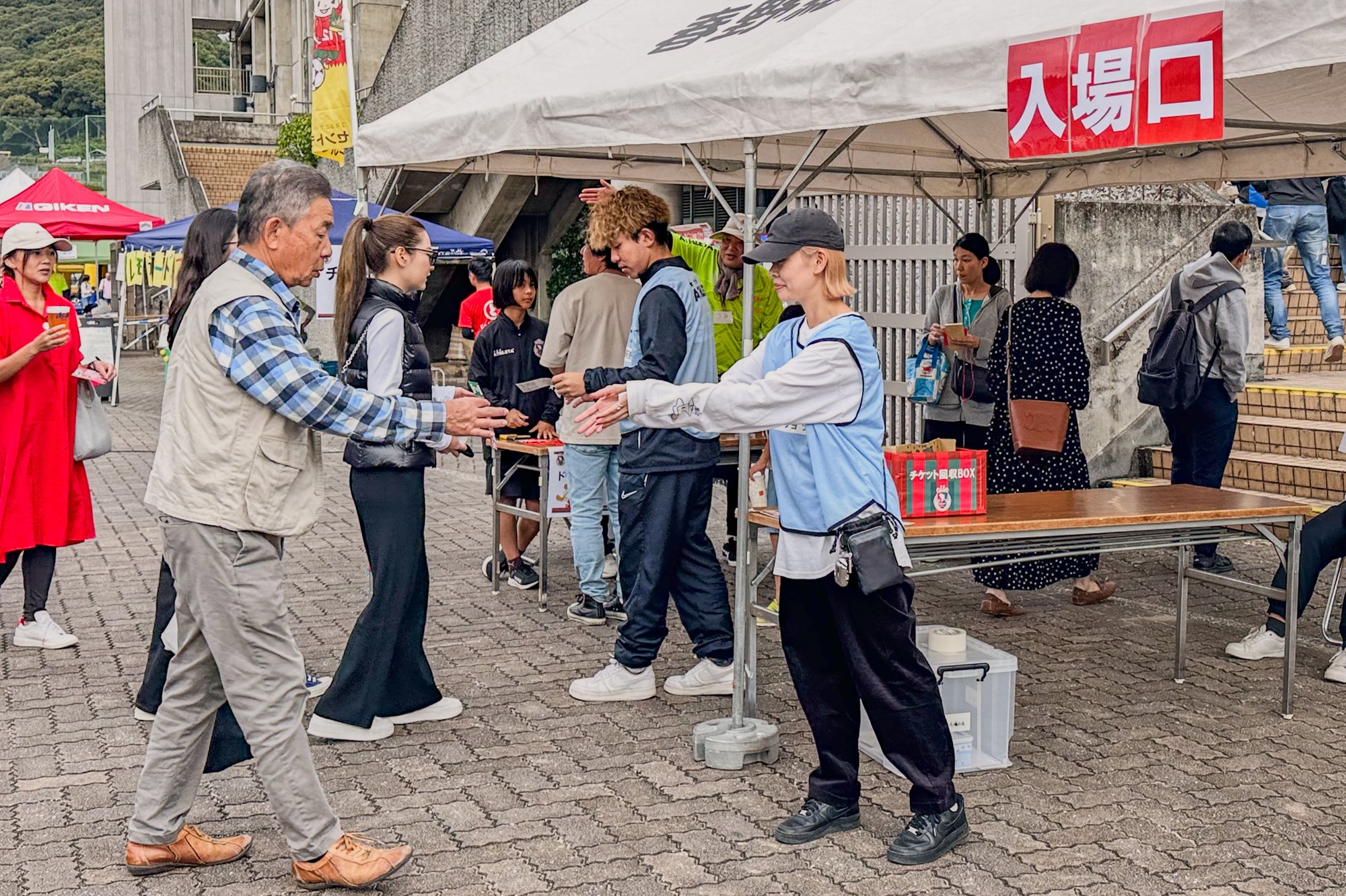 13시의 시합 개시까지 끊임없이 이어지는 입장자 대응을 실시하는 가운데, 다른 자원봉사 스탭과 함께 협력함으로써 접수 팀으로서의 일체감을 느낄 수 있었습니다.