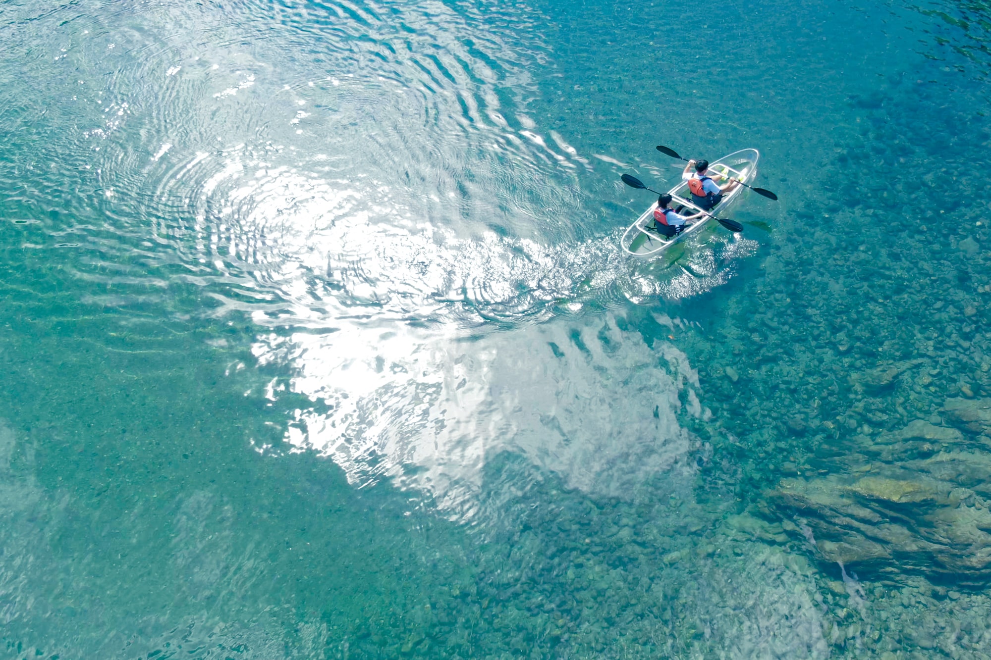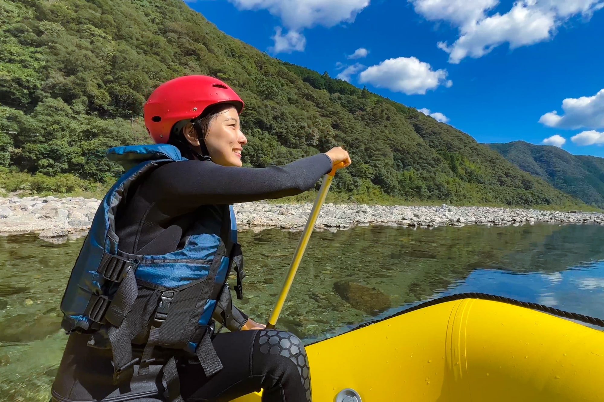 청류라고 불리는 시만토가와나 니요도가와에도 액티비티가 많이.투명도가 높은 수면을 직접 느낄 수 있는 클리어 카약도 인기입니다.