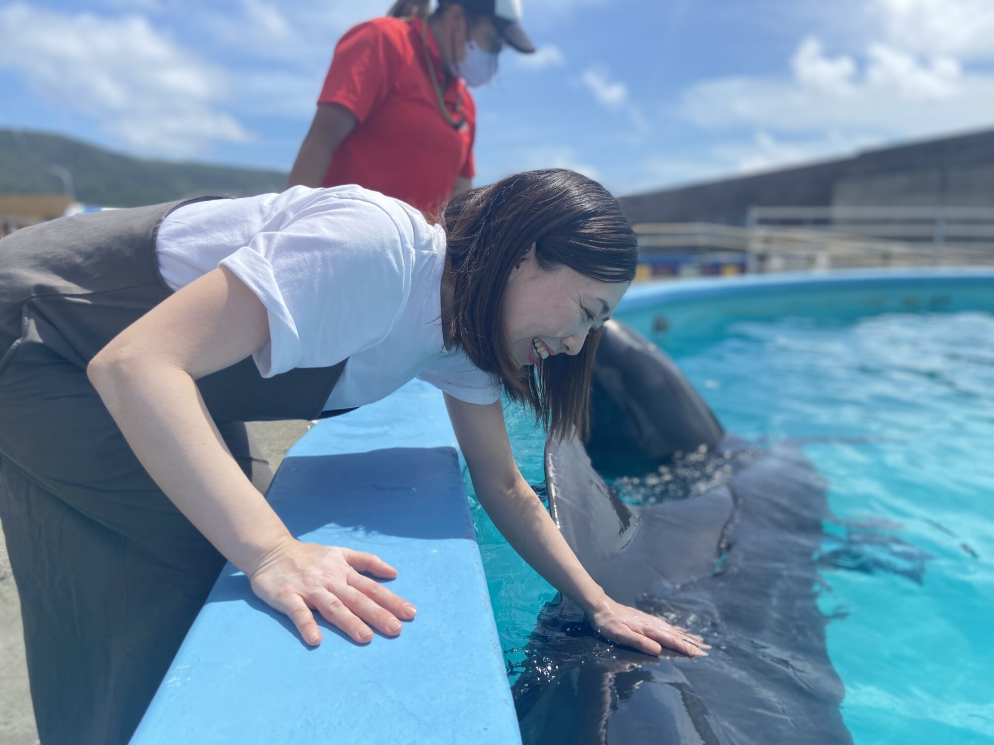 취재시에는 2마리의 큰돌고래가 마중 나와 주었습니다.마이페이스에 헤엄치고 있습니다만, 말을 걸면서 카메라를 향하면 마치 인간의 말을 알 수 있는 것처럼 포즈를 취해 주는, 툰데레인 하루군트레이너에게 딱 맞는 달콤보 토시짱각각의 귀여움에 취재진도 고무.