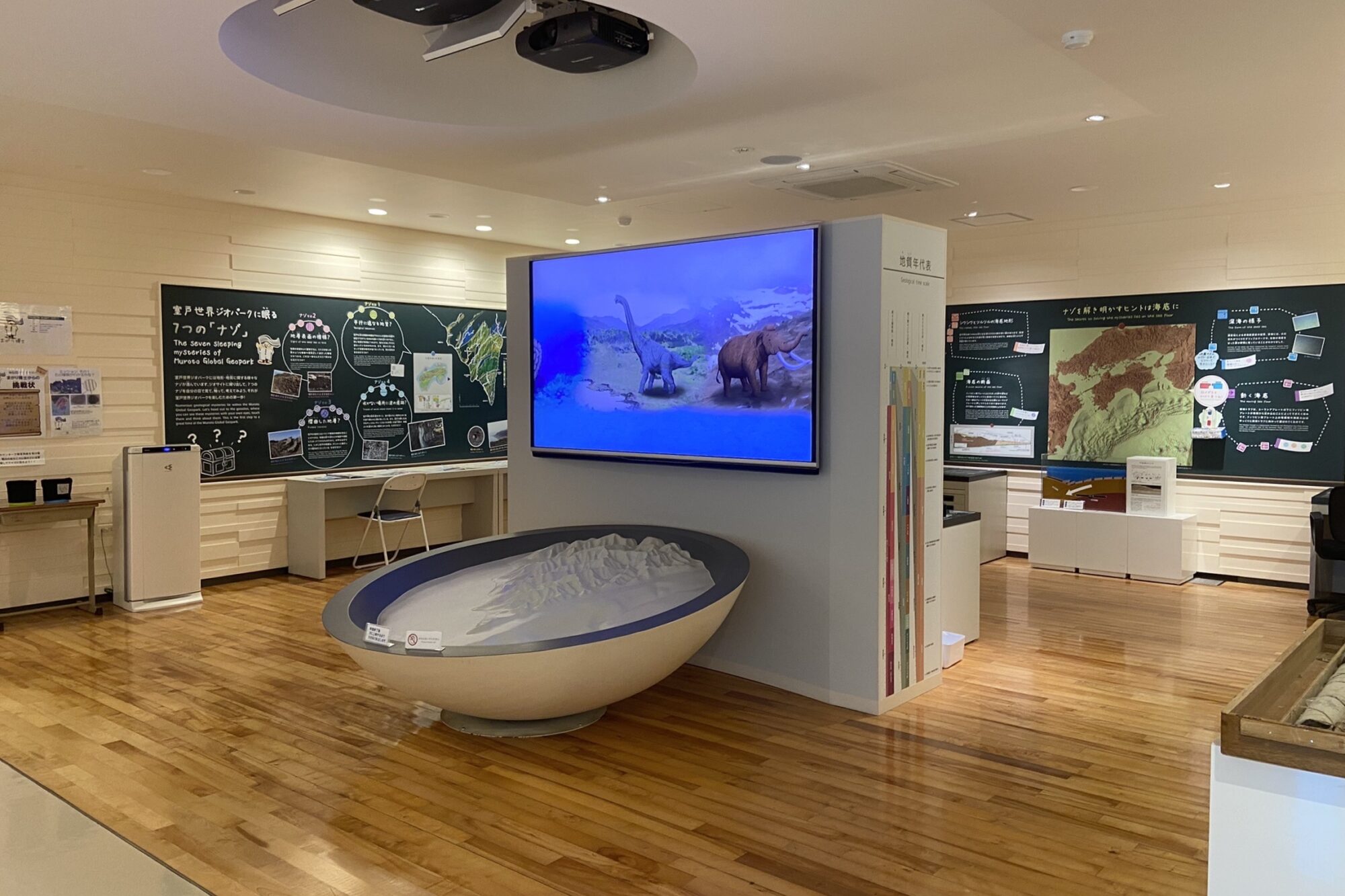 센터 내에서는 박력의 영상과 많은 자료로 지오파크를 생성하는 대지의 나름들이 소개되고 있을 뿐만 아니라, 실제로 날마다 그 땅에서 사는 무로토의 분들의 생활 등도 소개되고 있습니다.