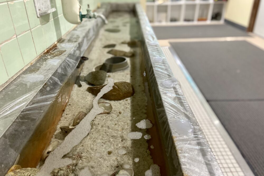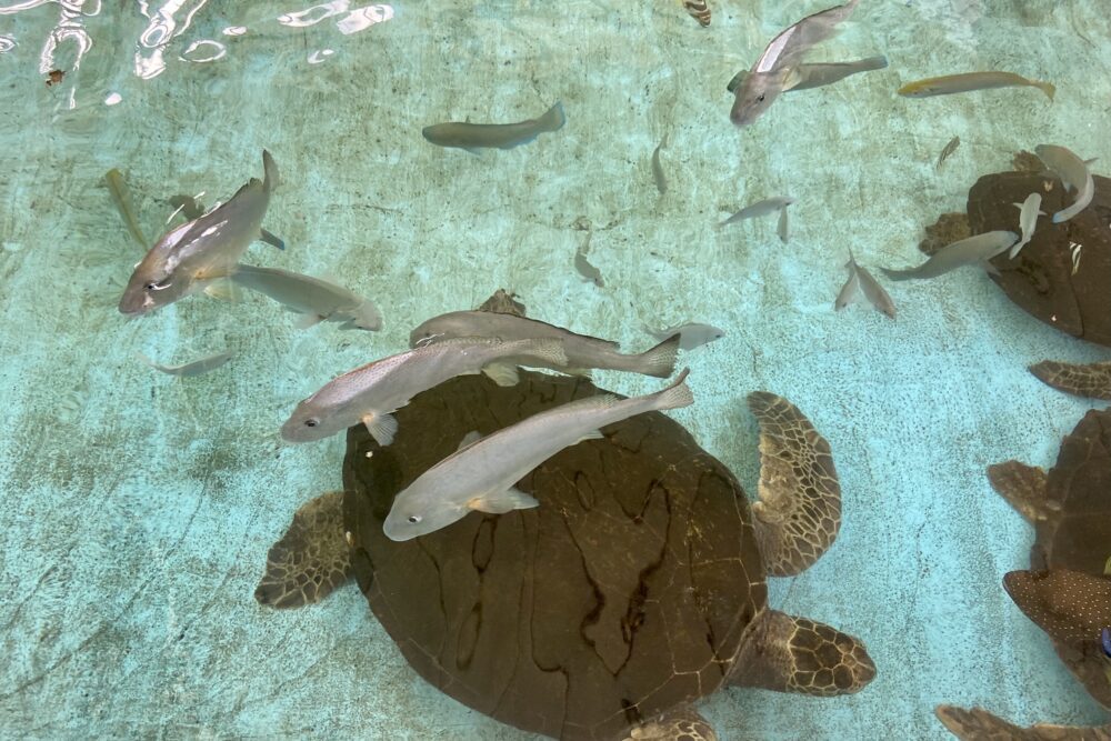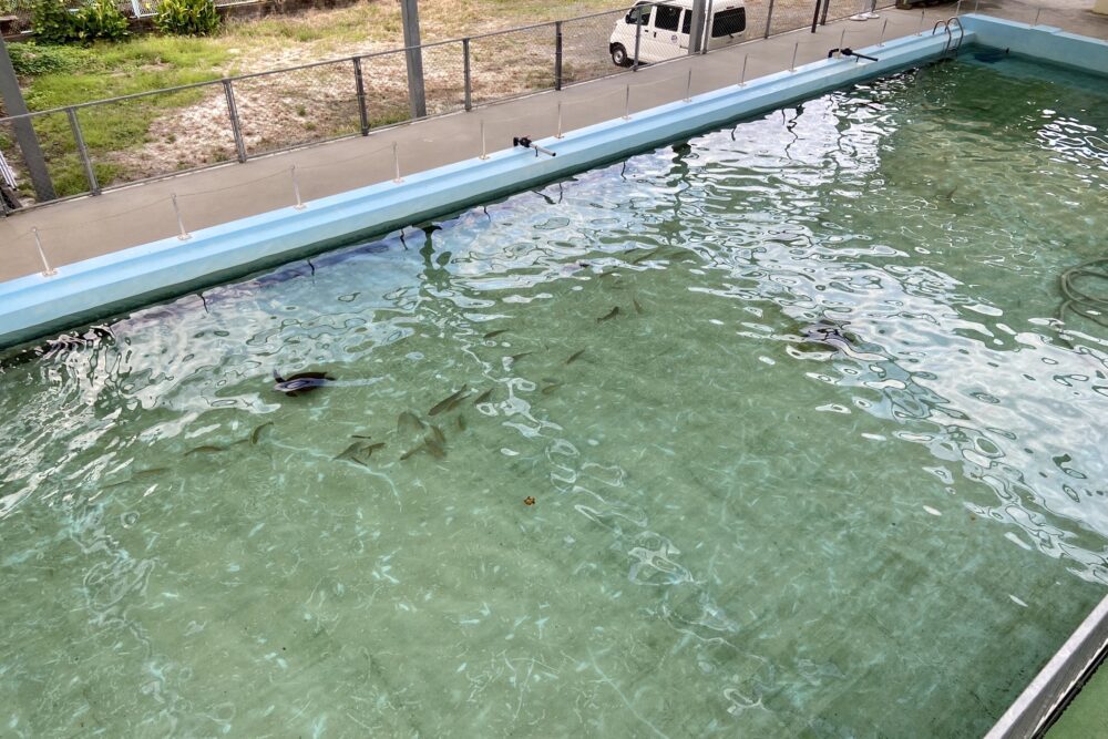 독특한 전시 방법으로 방문자를 질리지 않는 폐교 수족관 중에서도 굉장히 특징적인 것이 초등학교 때 모두가 헤엄치고 있던 25m 수영장을 그대로 큰 수조로 만들어 버리고 있는 곳.바다거북이나 상어, 고등어 등 다양한 물고기가 기분 좋게 헤엄치고 있다는 놀라운 광경을 볼 수 있습니다.