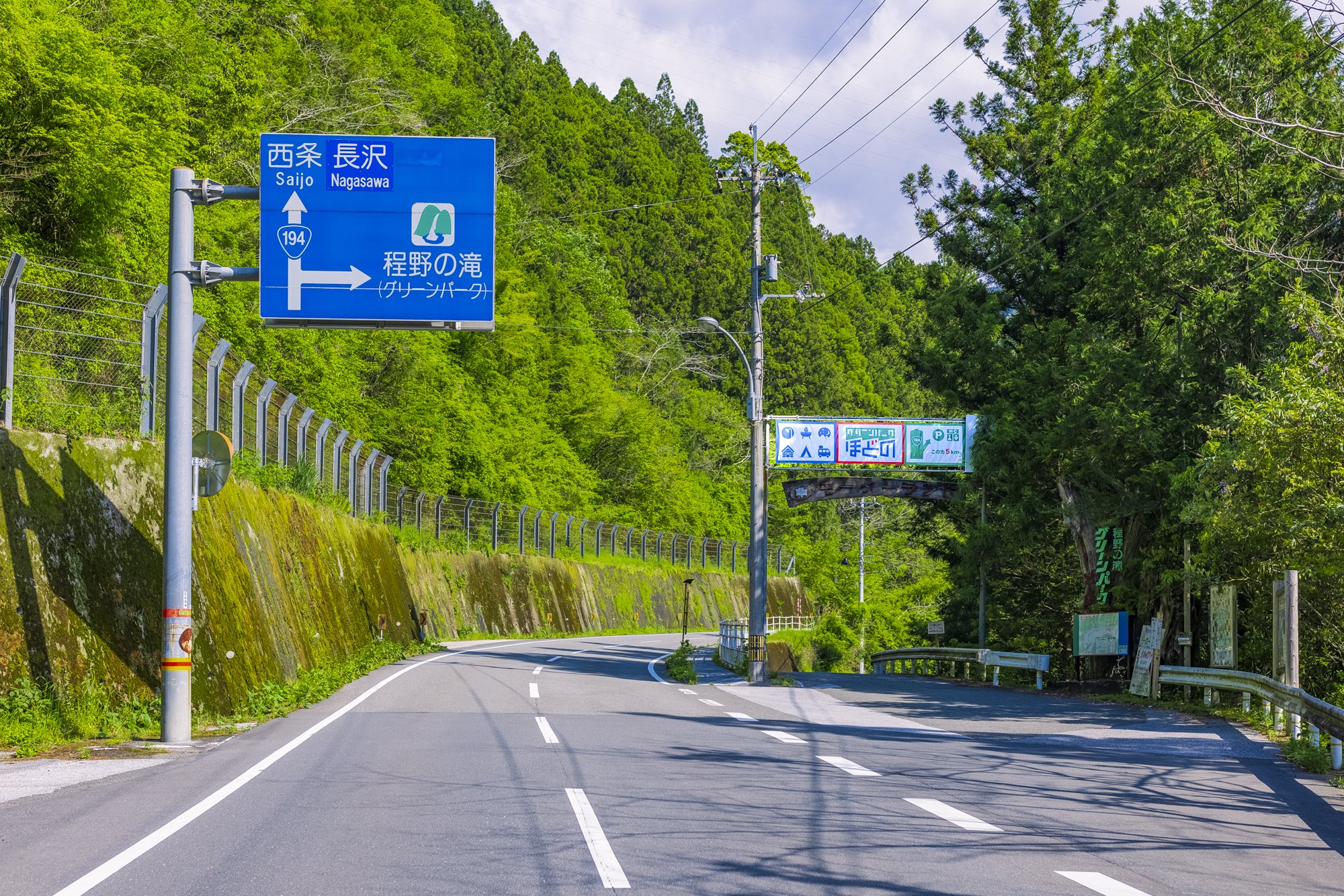스카이 스포츠에서 리프레쉬한 후에는 숙박시설로 향합시다.국도 439호선-194호선을 경유하여 약 1시간 동안 차를 달리게 하면 호노 폭포를 기록한 간판이 보입니다.오른쪽으로 가면 아가와군 이노마치 고호쿠 지구의 산간에 있는 「그린 파크 정도의」에 도착합니다.