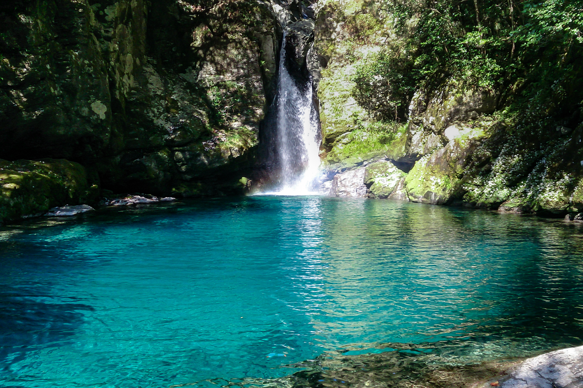 니코후치는 「니요도 블루」를 상징하는 에메랄드 그린의 폭포 츠보입니다.일년 내내 같은 색을 볼 수 없다고 할 정도로 기후와 시간에 따라 모습을 바꿉니다.그 중에서도 추천은 맑은 날 낮 무렵.햇빛이 수면에 꽂아, 이것이야말로 「니요도 블루」라고 하는, 신비한 경관을 즐길 수 있습니다.
