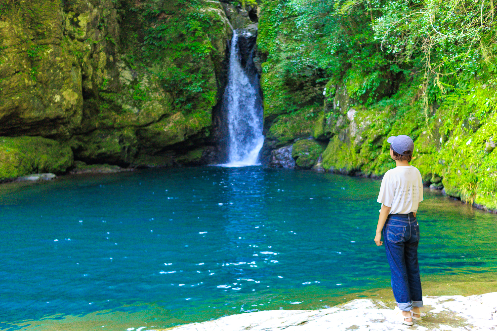 니요도가와초는 고치시에서 차로 약 1시간 반의 장소에 있는 에히메와의 현 경계의 마을.100~1800m의 산들에 둘러싸인 땅에, 니요도가와 상류를 비롯한 크고 작은 청류가 흐르고 아름다운 계곡이 점재하고 있습니다.그 중 하나 나카츠 계곡을 넘어 산길을 20분 정도 북상한 곳에 있습니다.