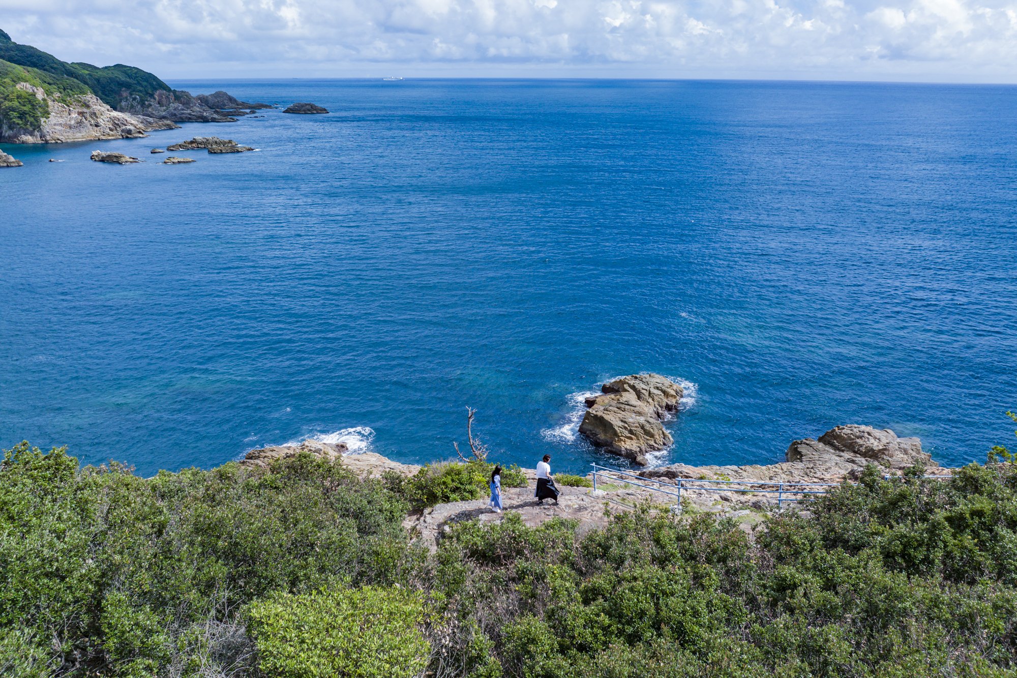 전망대에서 일망할 수 있는, 감벽의 태평양!아득히나타에 수평선이 계속되어, 오미하라와 푸른 하늘, 하얀 구름이 일체가 되어 대자연의 파워를 느끼게 합니다.그리고 눈 아래로 보이는 것은 족쇄만의 험난한 바위바바위에 쏟아지는 파도, 부서지는 하얀 물결이 다이나믹!웅대한 경관에 압도됩니다.