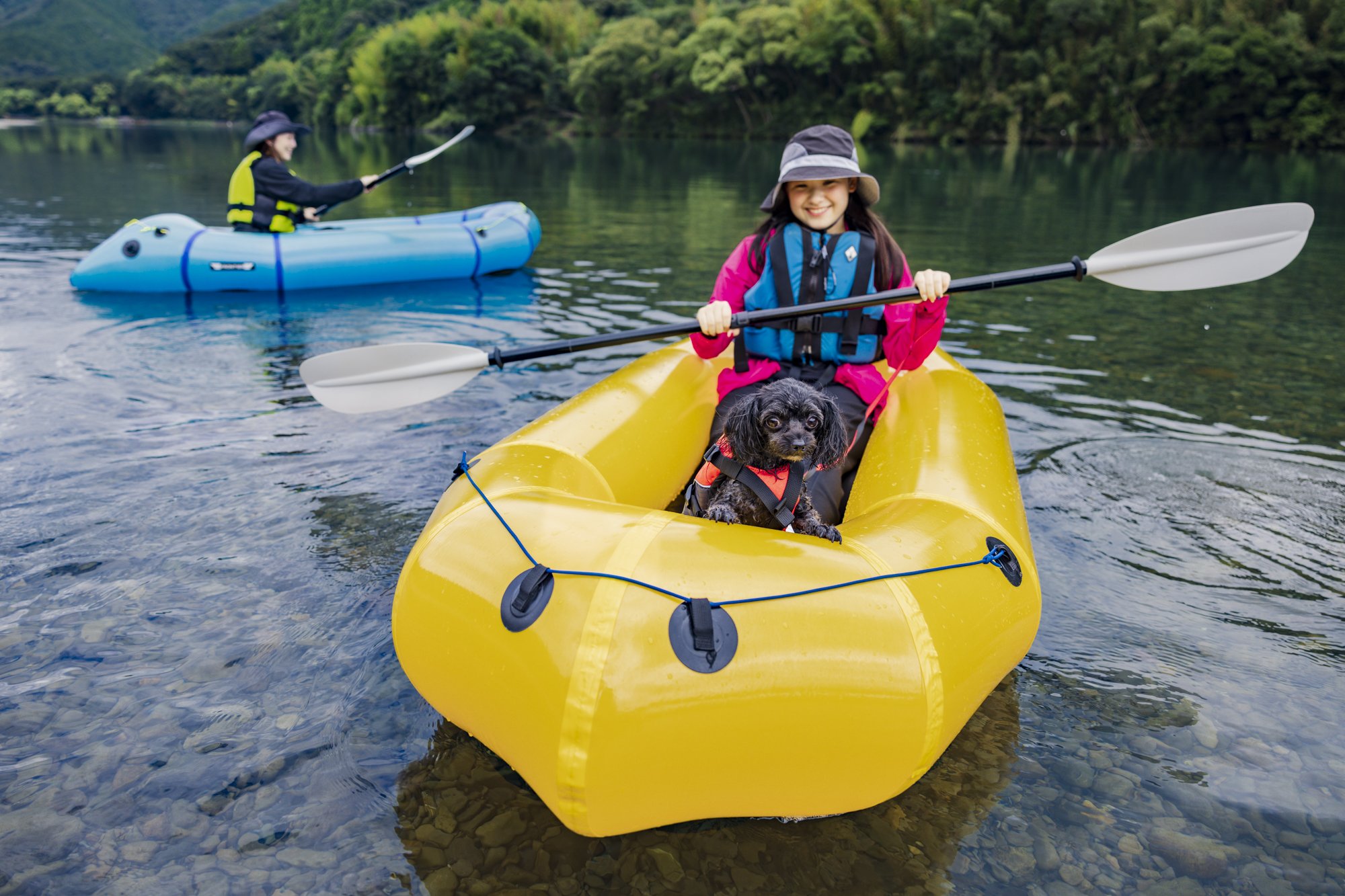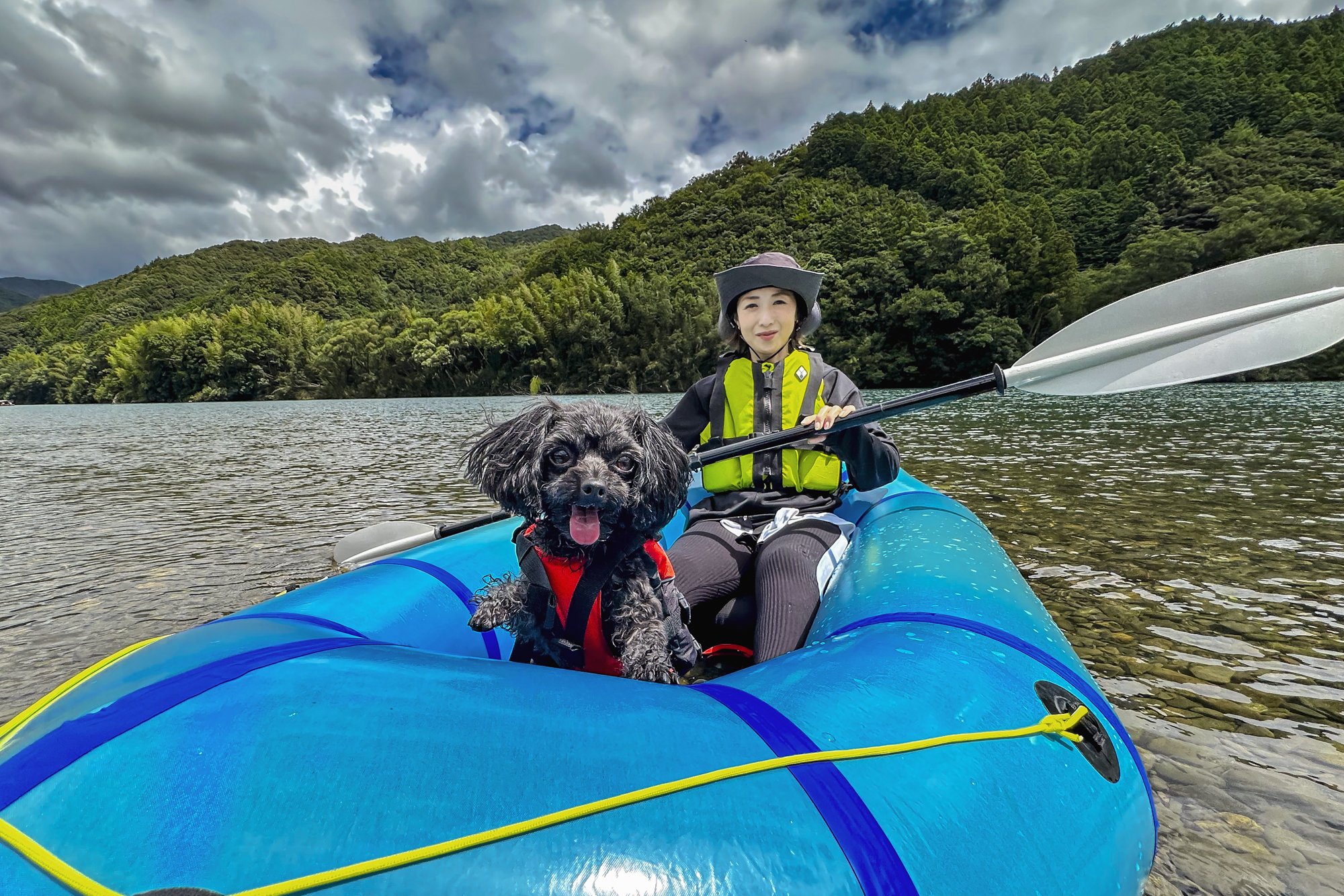 오케라 어드벤처즈에서는 시만토가와를 즐기는 다양한 가이드 메뉴를 갖추고 있습니다.이번에 체험하는 것은 애견과 시만토가와를 내리는 "1일 전세 카누 강아지 데뷔!패크래프트 강 내려 플랜」.이쪽은, 1일째에 놀러 간 「원라이프」 감수의 메뉴입니다.