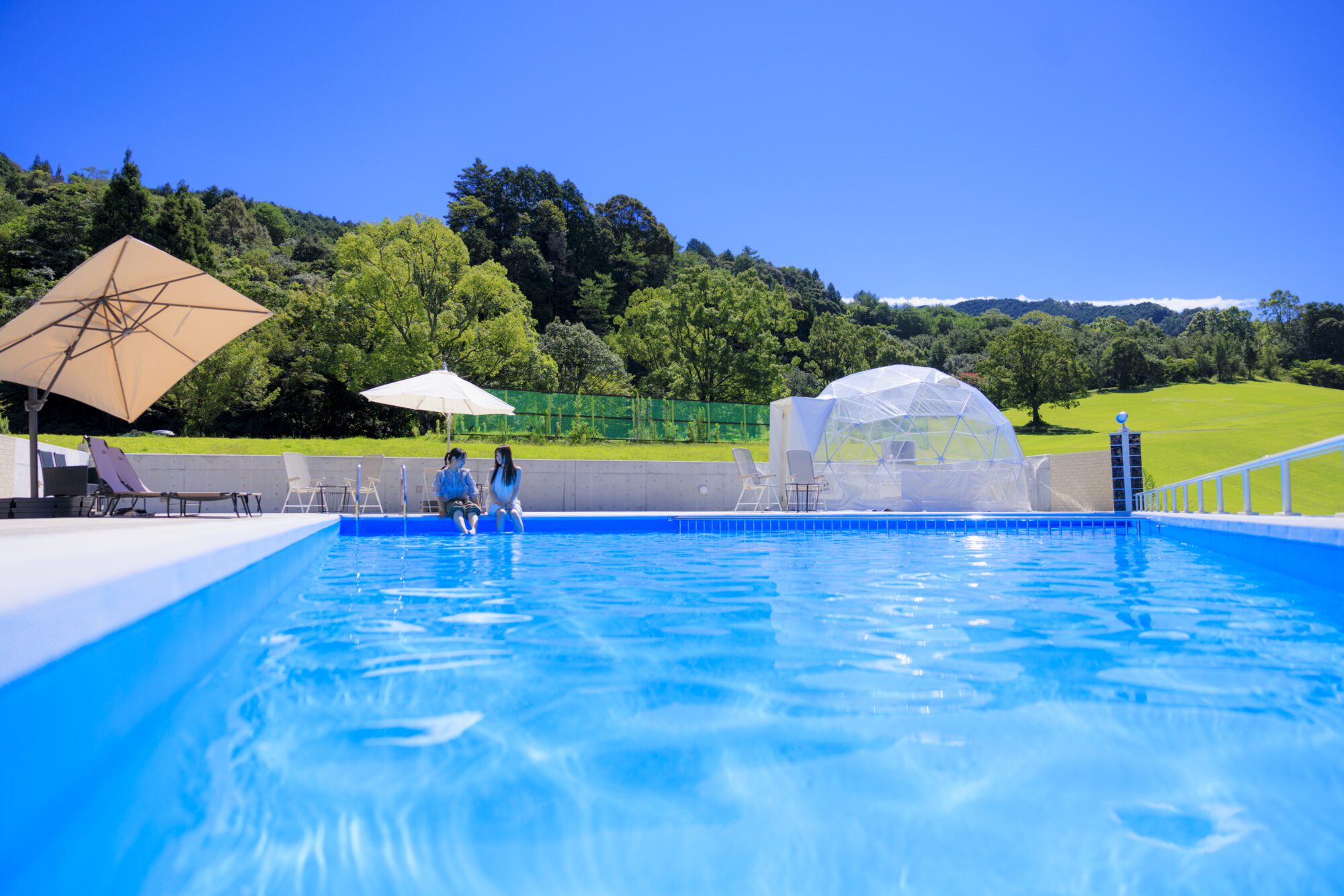 돔에서 걸어서 바로 거리에는 공유 수영장도 있습니다.풀 사이드에서 맑은 공기를 느끼면서 즐겁게 보내는 것도 좋고, 한가로이 수영장에 떠서, 막는 것이 없는 하늘을 바라보는 것도 좋다.20시까지 이용 가능하므로, 별하늘을 올려다보는 나이트 풀도 즐길 수 있습니다.