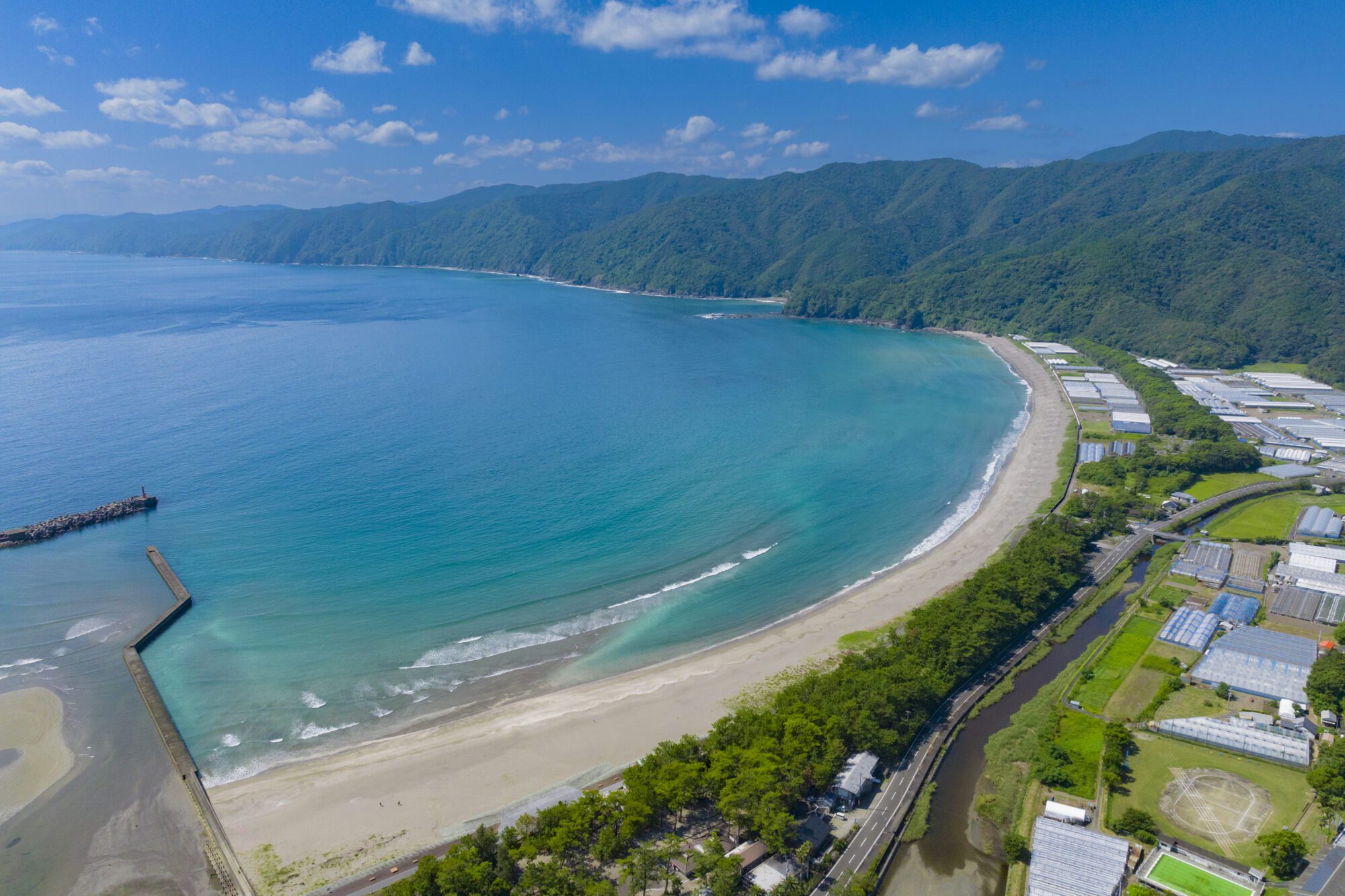 약 2km에 걸쳐 커브를 그리는 아름다운 시라하마 아오마츠의 모래 사장과 투명도가 높은 바다, 그리고 반짝반짝 빛나는 하늘.일면에 한가로운 풍경이 펼쳐져 마음이 치유됩니다.