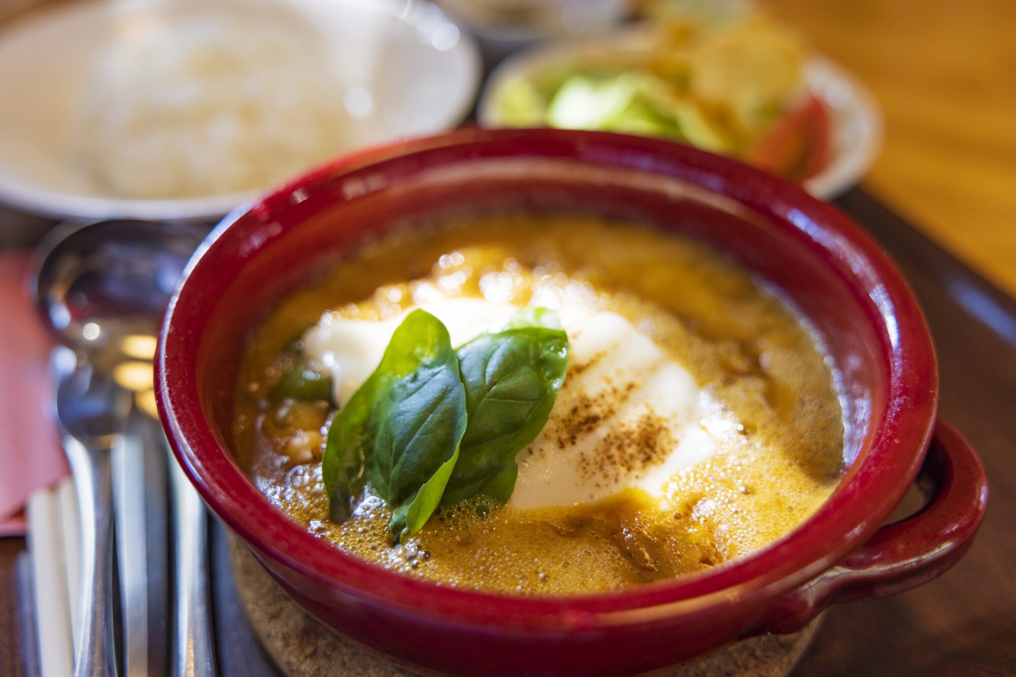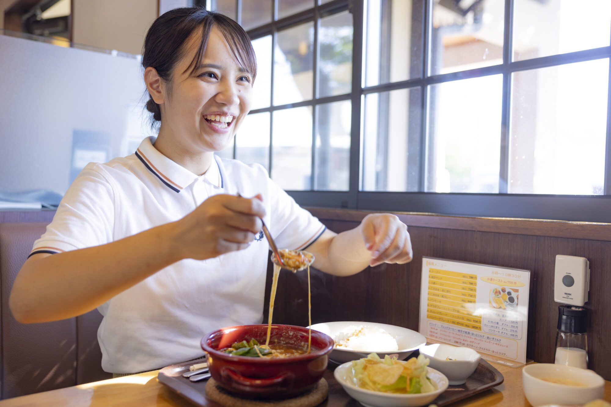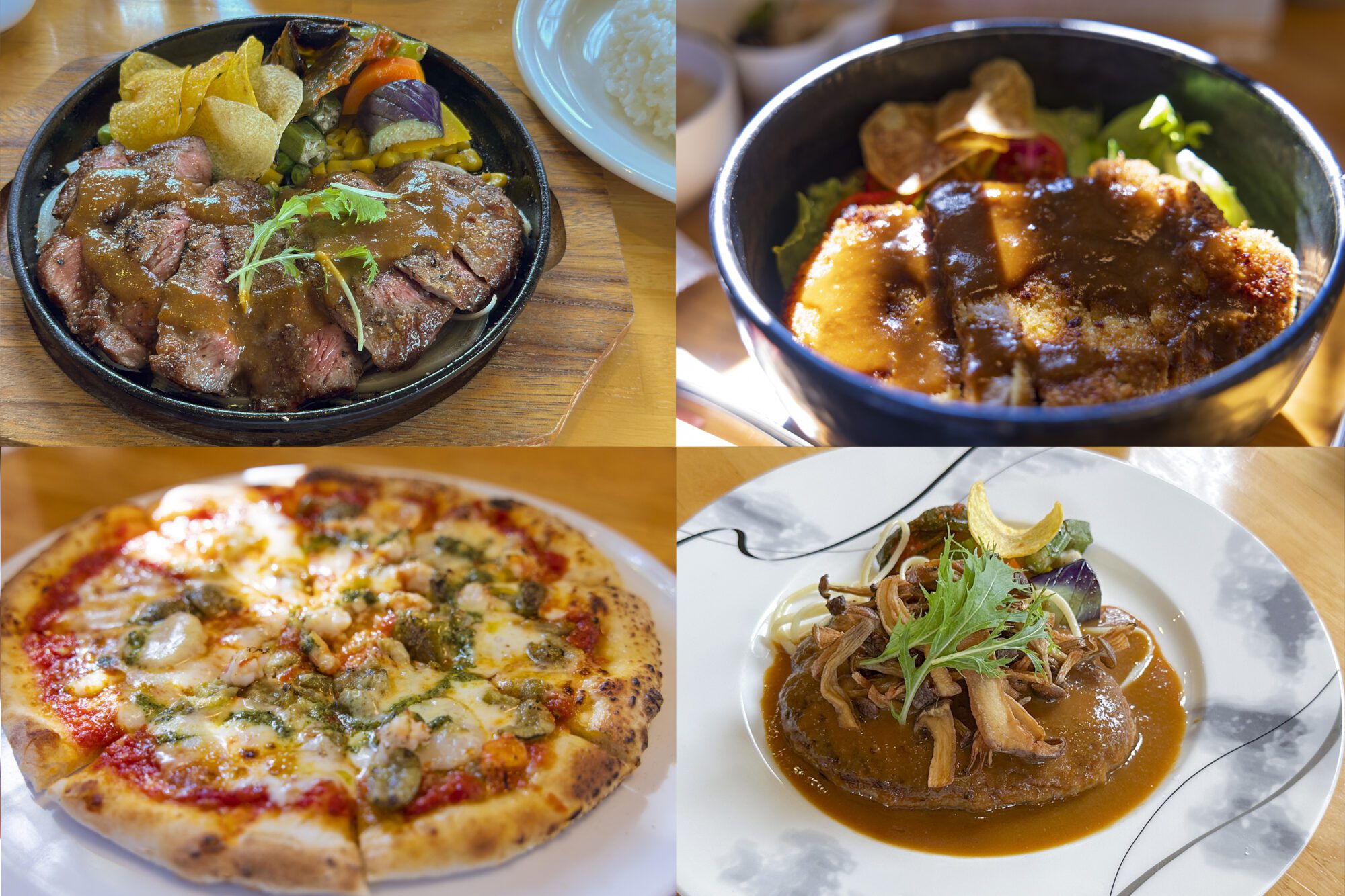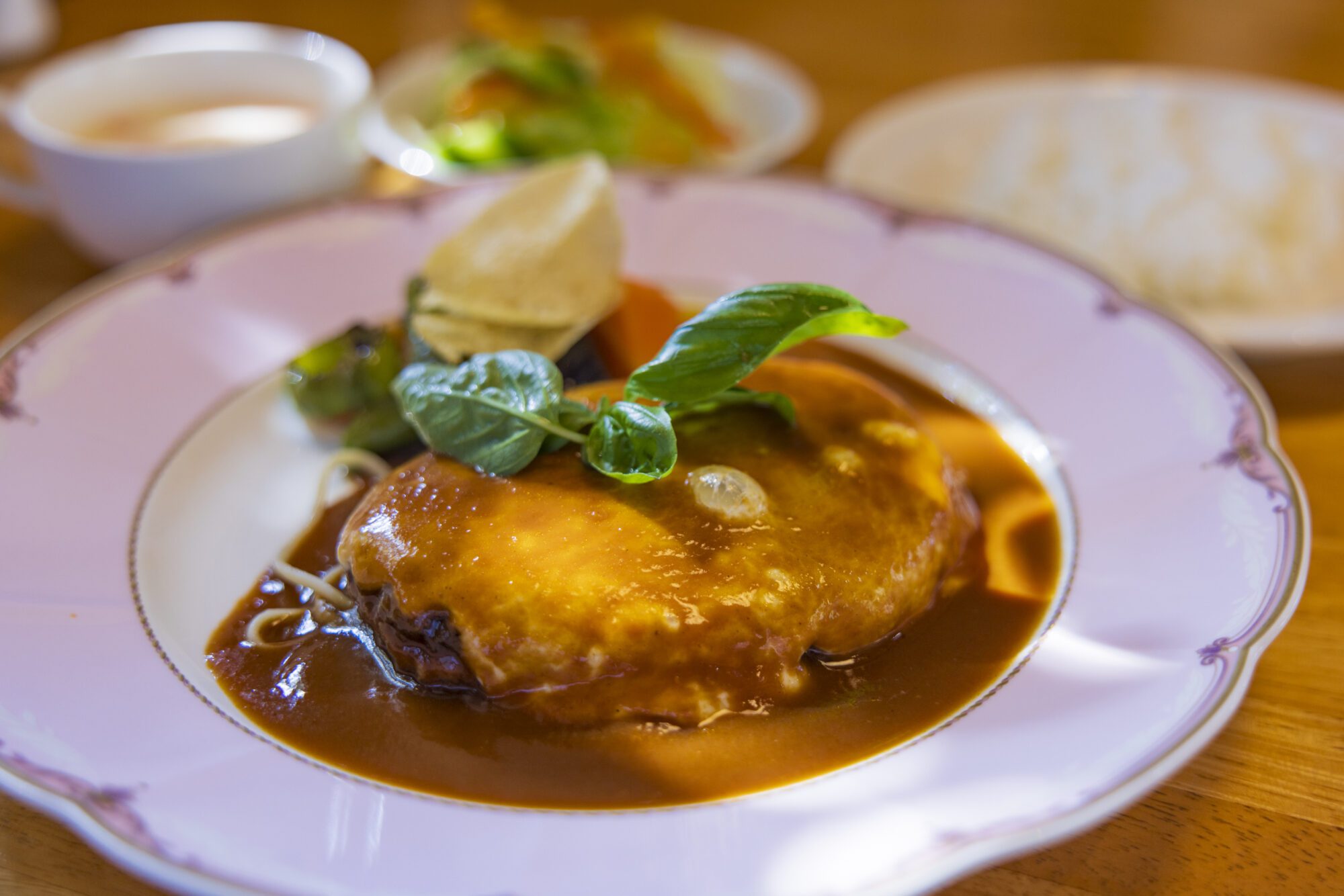 2명이 받은 것은, 「모짜렐라 치즈 구이 햄버그 스테이크」, 「모짜렐라 치즈와 츠치나베 키마풍 카레」.간판 메뉴의 햄버그에는 매일 아침 구매하는 시만토 쿠로모 와규와 시만토 포크를 사용하고, 소스는 시만토초산의 소수고기로 정중하게 끓인 데미글라스 소스를 생강 완공으로 하고 있습니다그 외 모든 쌀은 시만토초산의 니이다 쌀, 계란도 시만토초산의 고원 달걀을 고집하고 있어, 차분한 점내에서 상질적인 맛을 즐길 수 있습니다
