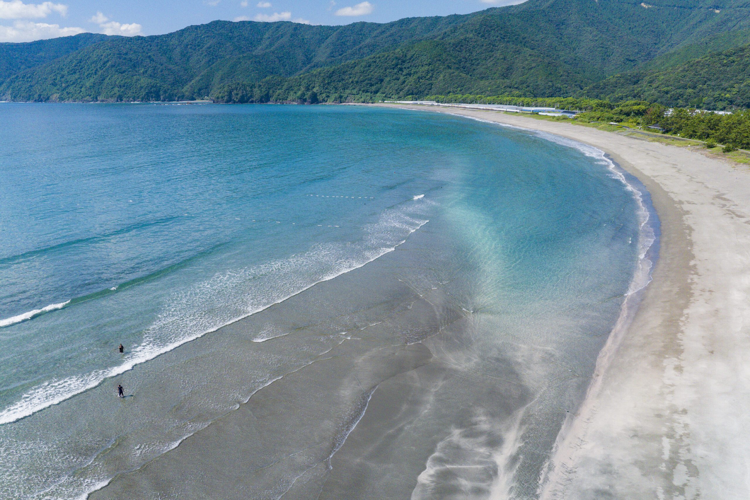 나카요시의 2명이 최초로 향한 것은, 오키쓰 현립 자연 공원 내에 있는 오키츠 해수욕장입니다.이곳은 2001년 환경성 ‘일본의 목욕탕 88선’에 고치현에서 유일하게 선정된 해수욕장.뛰어난 경관과 수질로 2006년에는 「쾌수욕장 100선」에도 선정되었습니다.