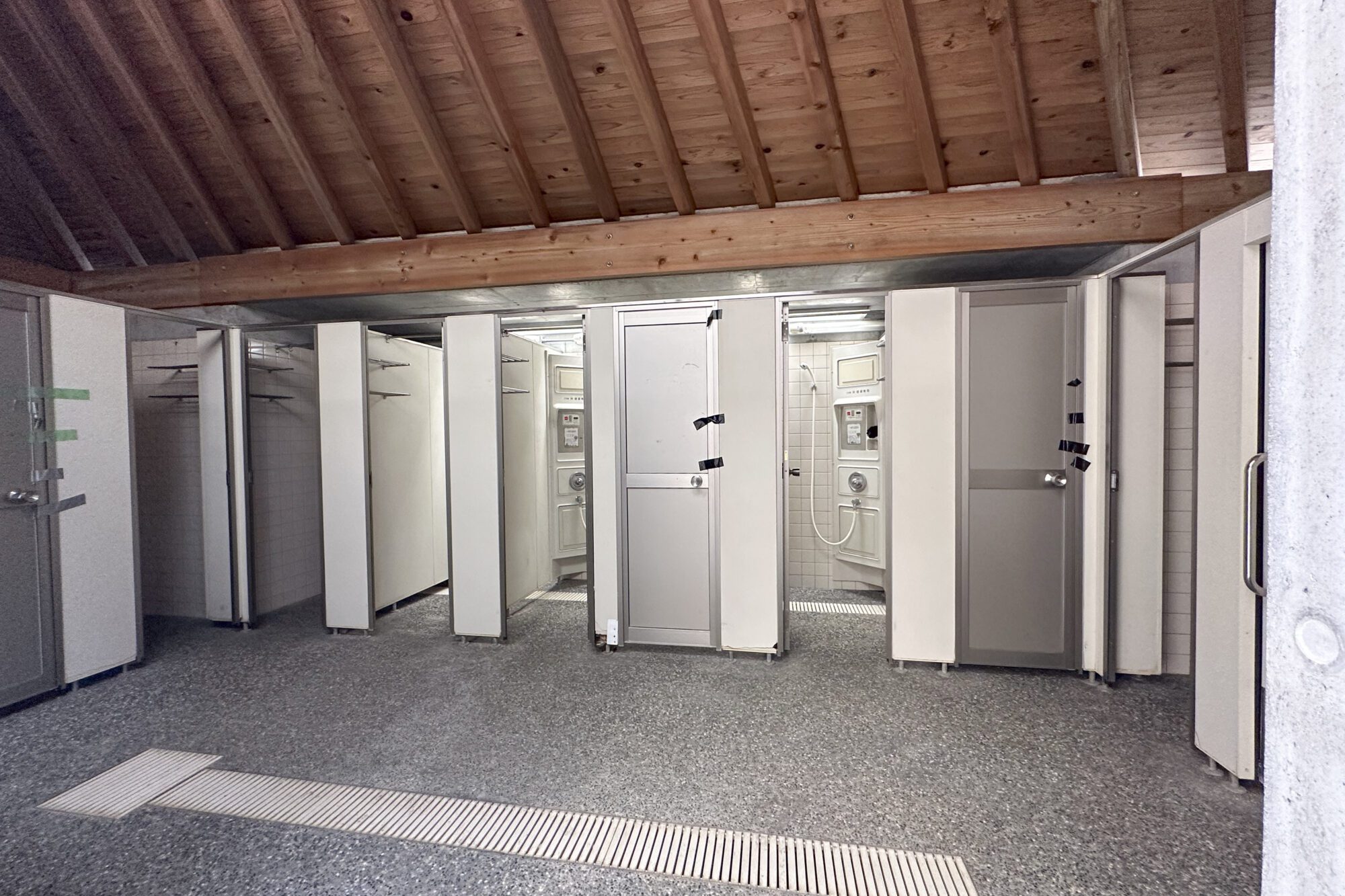 접수 옆에는 온수 샤워가 나오는 샤워실이 완비되어 있습니다.해수욕장에 인접한 송림 중에는 캠프장도 있어, 촛불에 인기입니다.
