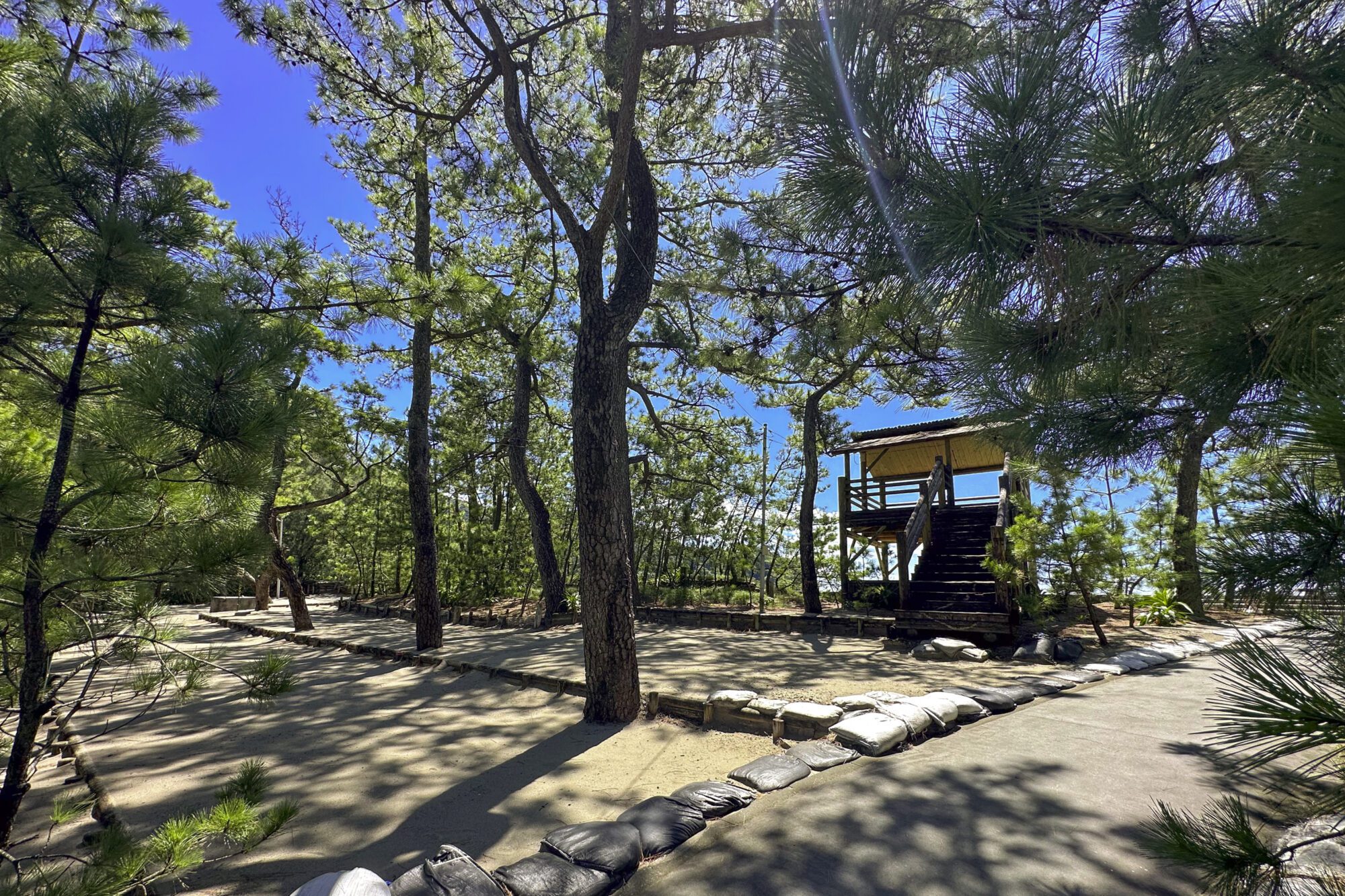 해수욕장까지는 주차장에서 걸어서 바로.소나무 숲을 지나면 눈앞에 에메랄드 그린의 바다가 펼쳐집니다.