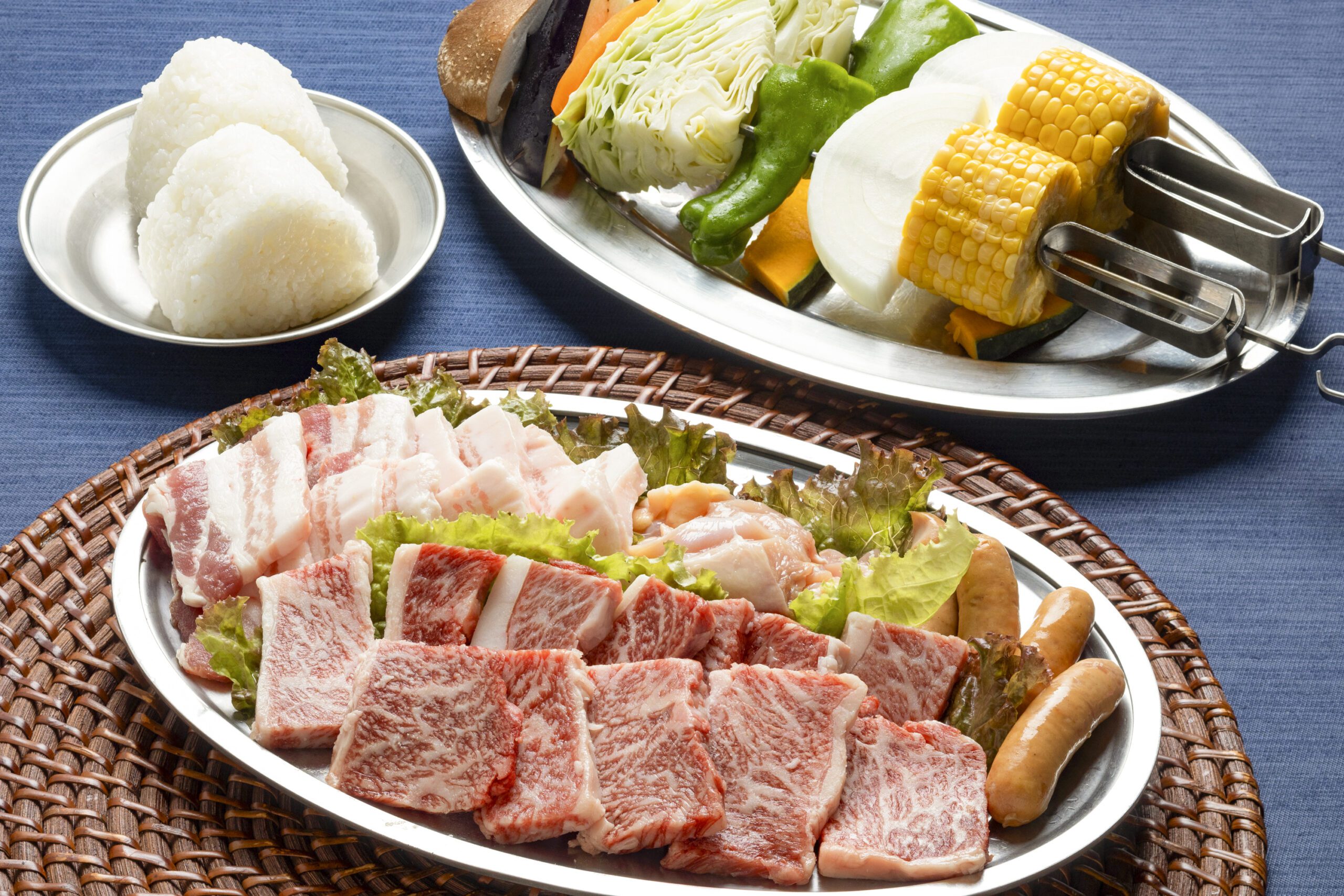 「시만토의 밤하늘 코스」는 니이다 쌀의 주먹밥, 시만토포크, 시만십계, 현지의 야채 등, 시만십의 식재료를 고집한 바비큐 메뉴.그릴이나 숯, 통구 등이 붙어 있기 때문에 빈손으로 호화 바비큐를 즐길 수 있습니다.