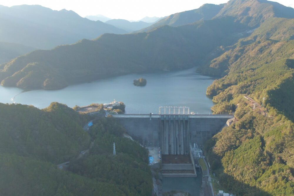 니시일본 제일의 저수량을 자랑한다고 시코쿠 각 현에 분수되어 시코쿠의 물이로서 많은 사람들의 생활을 지지하고 있습니다.