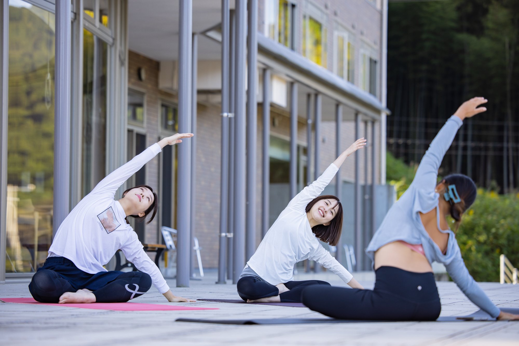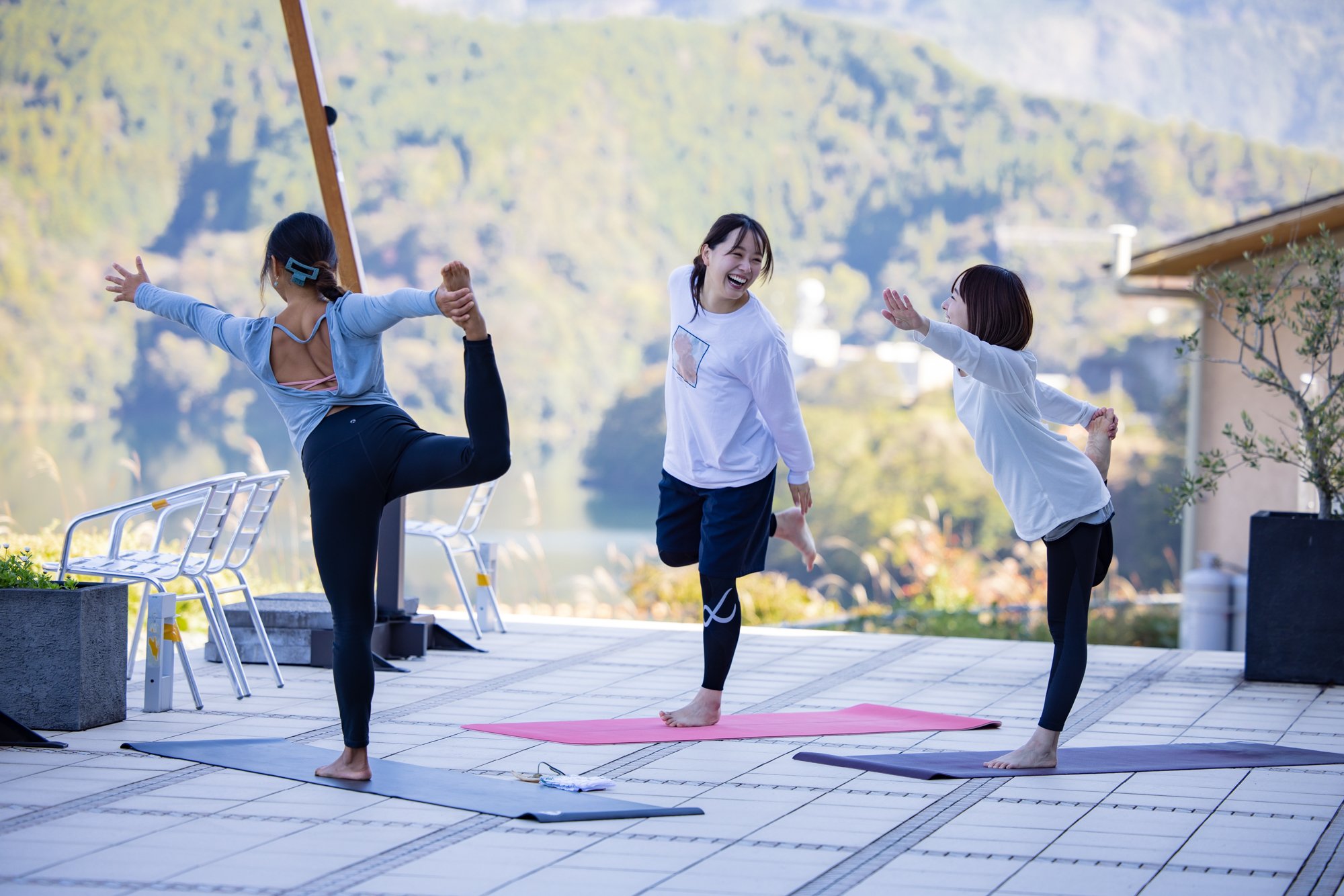 호텔 숙박 예약시에 아울러 예약해 두면 체험할 수 있는 「모닝 요가」.