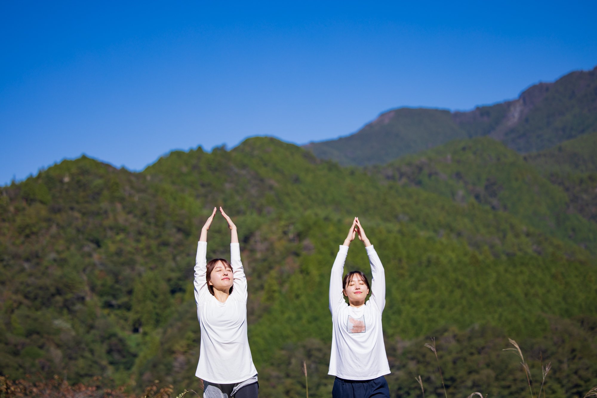 사메우라 호수를 바라볼 수 있는 테라스에서 아침의 공기를 느끼고 깊게 호흡하면서 천천히 몸을 깨워 갑니다.데스크워크나 스마트폰으로 응어진 신체를 풀어 기초 대사를 올려 갑시다남녀 불문하고 추천합니다.