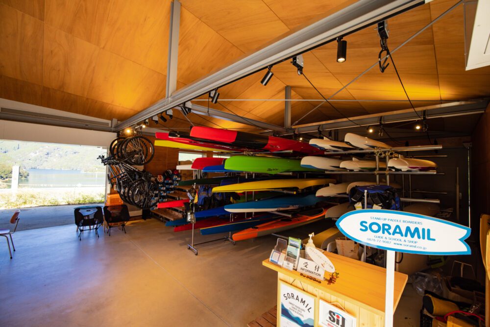 우선 방문하는 것은 「사메우라 카누텔라스」여기에서는 호수 위에서의 카누와 SUP 외에도 사이클링 등 다양한 액티비티 플랜이 제공됩니다.