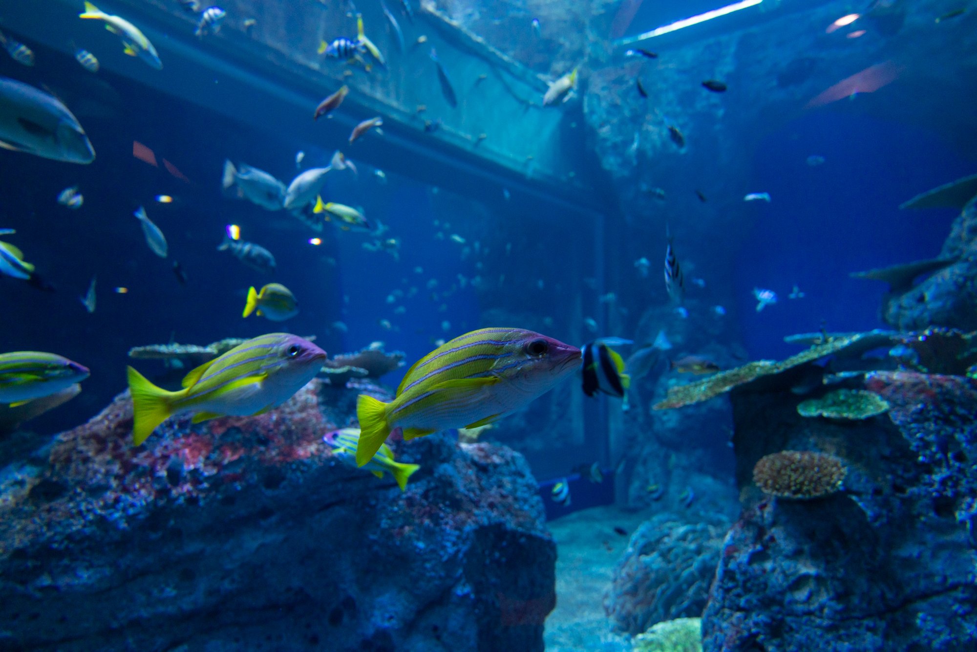 헤엄치고 있는 물고기 중에는 실제로 사육사가 바다에서 낚아 온 물고기도 있다고 합니다.