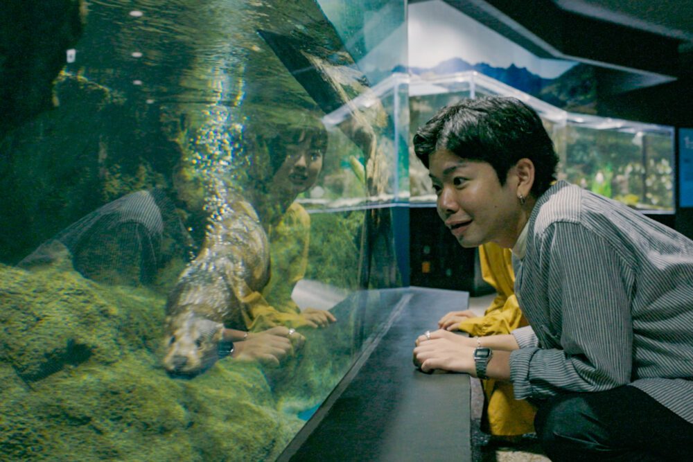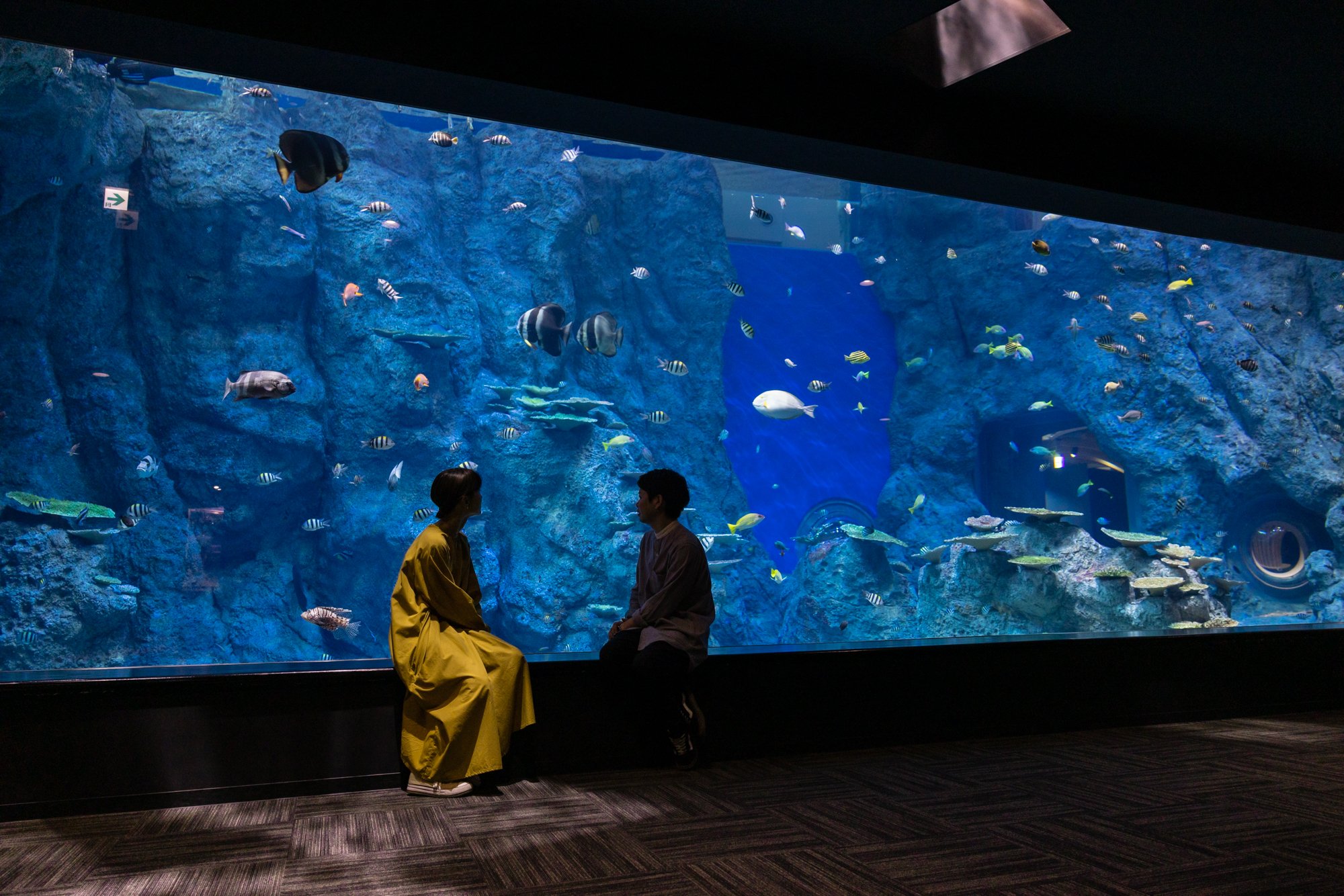 SATOUMI의 눈앞에 펼쳐지는 「류꼬치만」의 바닷속 세계가 충실하게 재현된 「류쿠치만 대수조」