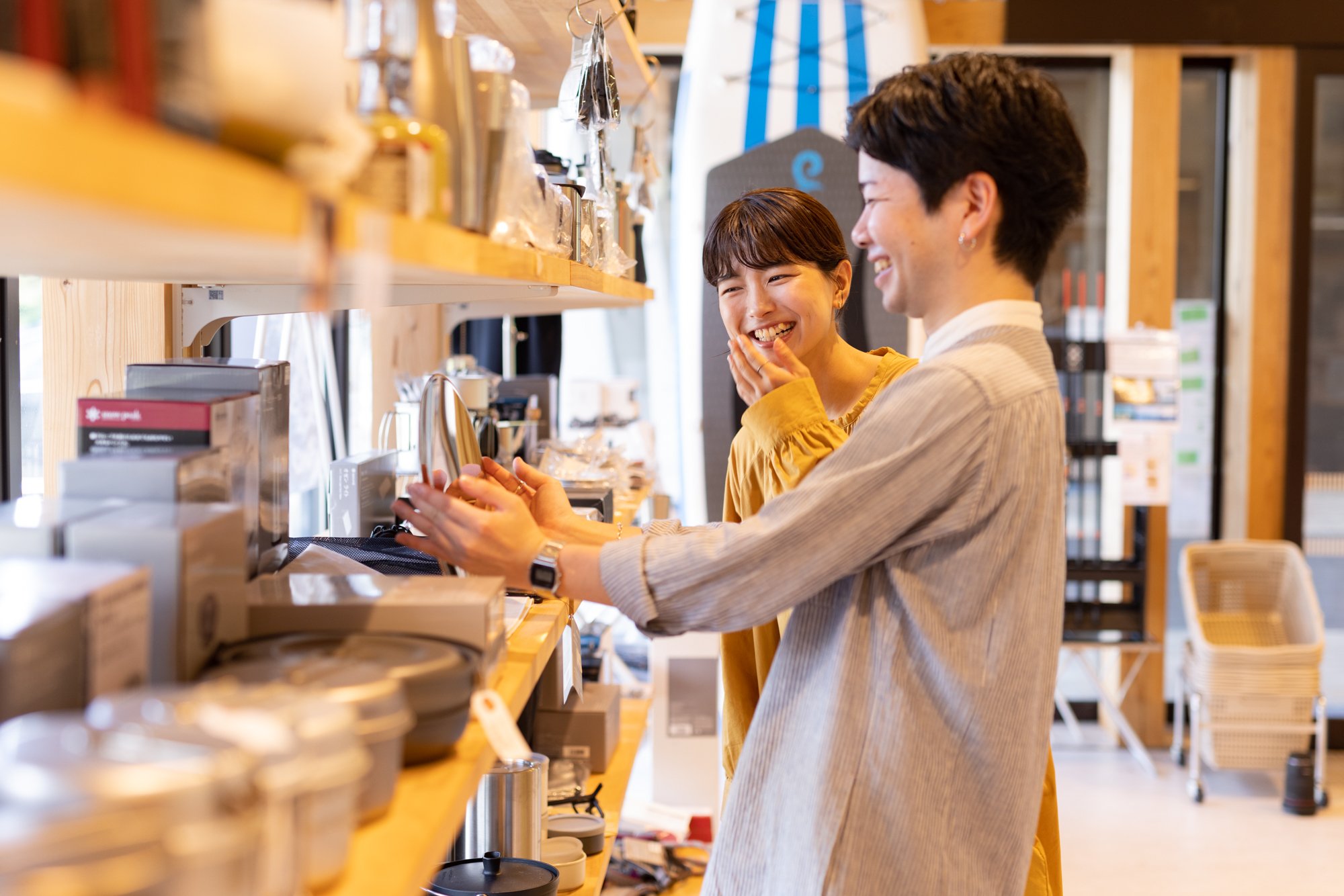또, 스노우 피크의 캠프 기어나 의류 등, 종류 풍부한 라인업을 갖춘 직영점도 병설원하는 상품을 손에 들고 볼 수 있으며 그 자리에서 구입할 수도 있습니다.