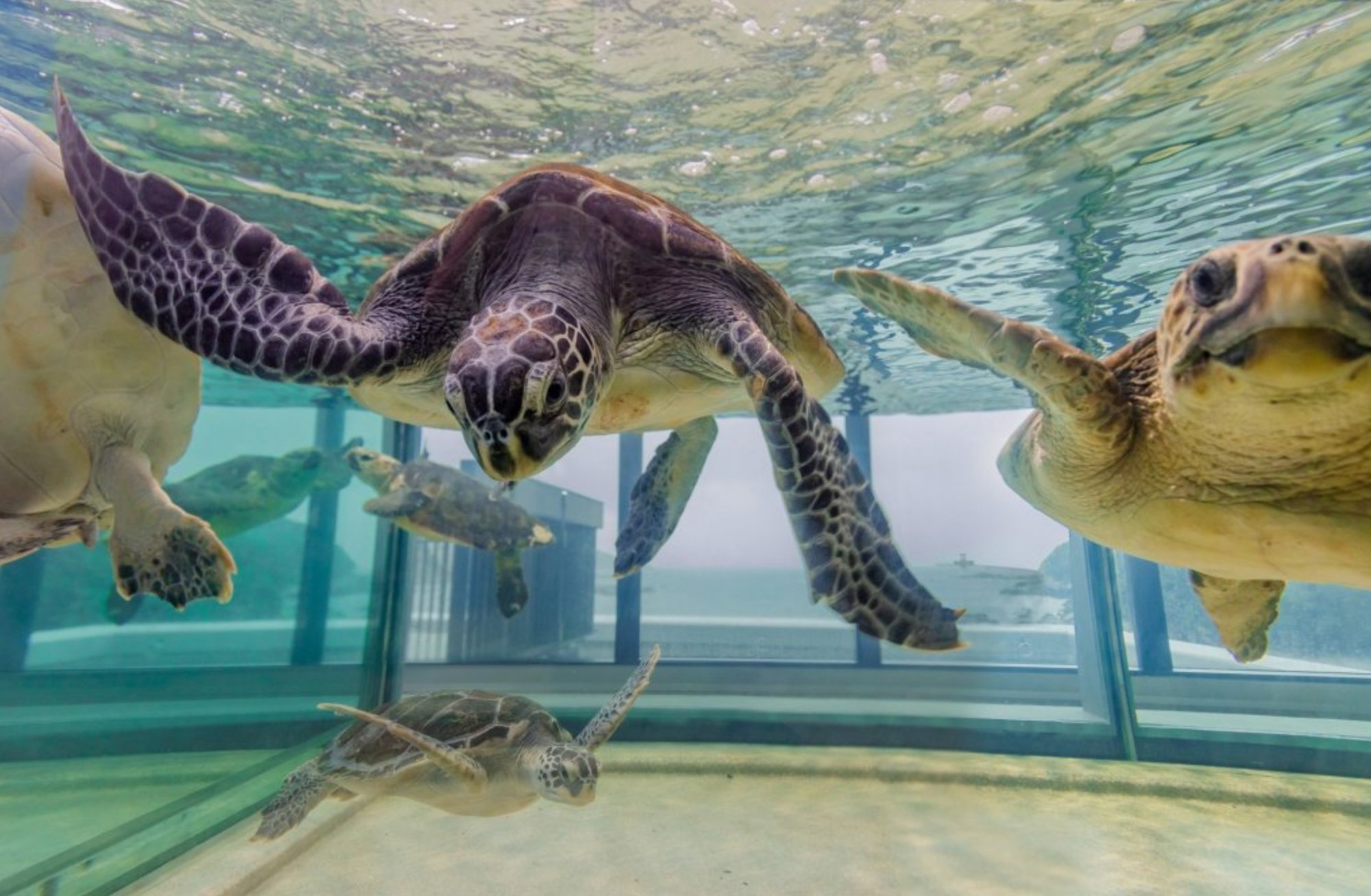 바다거북의 전시 공간에서는 조금 주저앉아, 시선을 낮추는 것이 포인트!