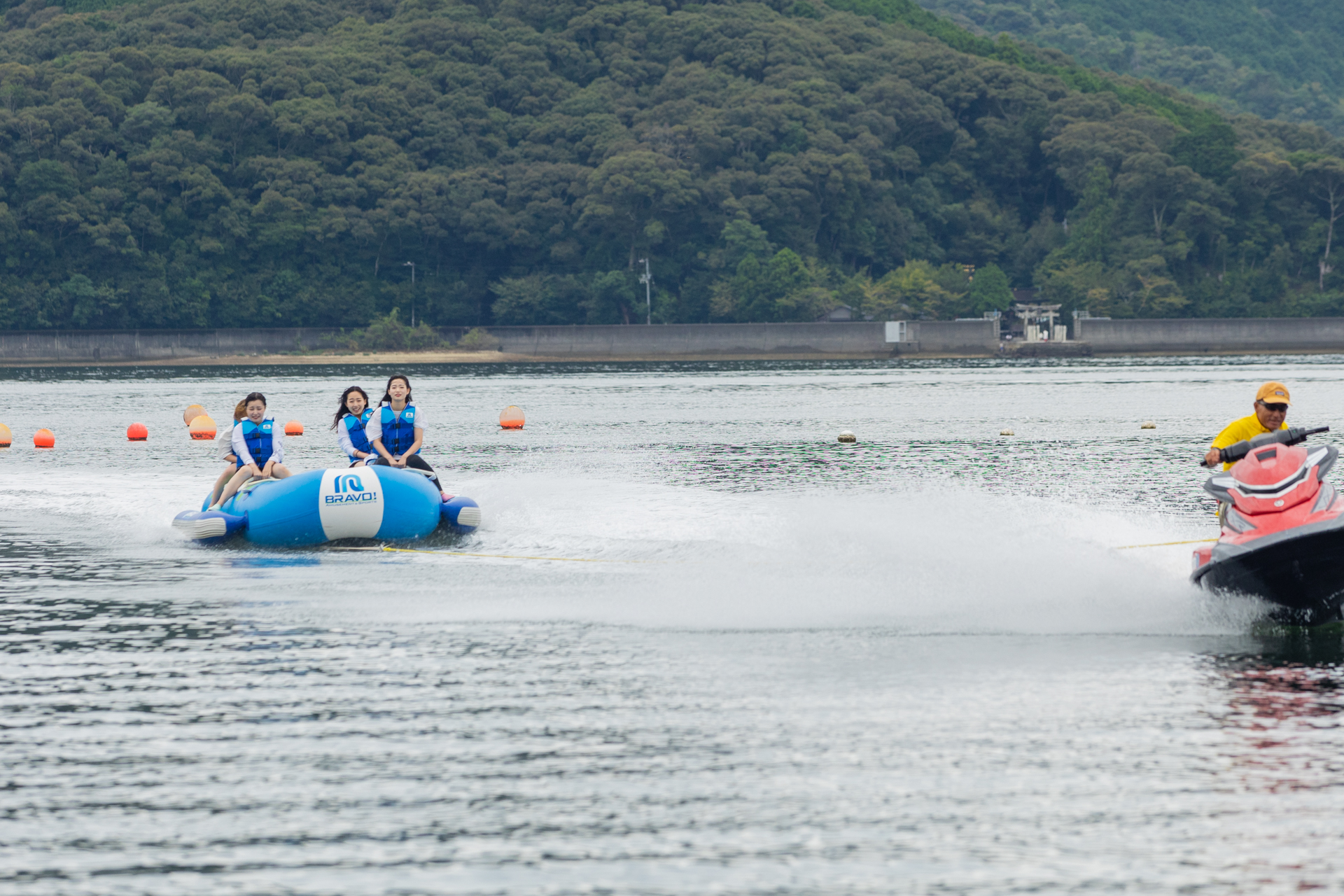 제트스키로 끌어당기는 바나나 보트는 4명 이상으로 이용할 수 있으며 가족이나 친구와 함께 스릴 만점의 바다 드라이브에 출발!