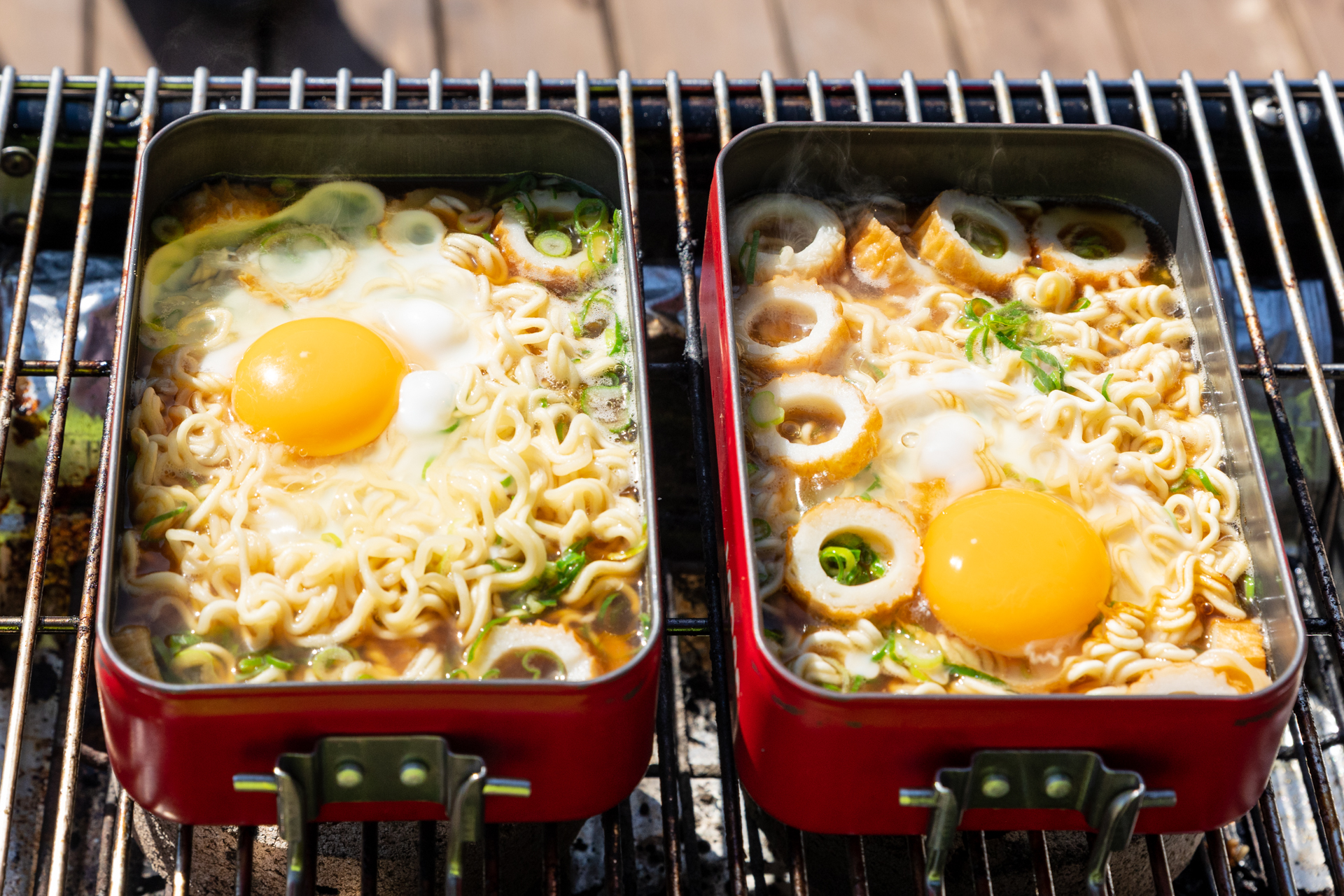그리고 이 로고스 파크의 BBQ 메뉴 「고치 스사키 세트」를 주문한 분에게 인기인 것이, ★에 딱 맞는 스사키 명물 「냄비 구이 라면」을 만들 수 있는 키트! 냄비 구이 라면 특유의 토핑인 치쿠와 파, 계란이 이미 직화 조리 가능한 메스 키트에 들어가 있어, 그대로 그물에 의해 만들 수 있습니다.