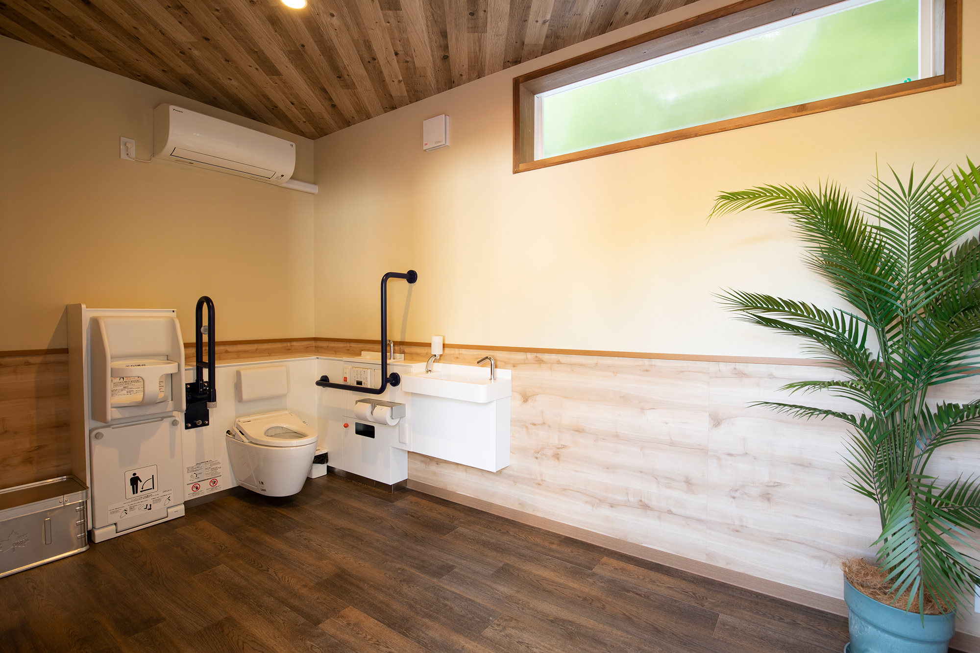파크 내에는 서니터리 설비도 충실하고, 베이비 의자도 완비한 다목적 화장실이나 샤워실이나 아기 데리고 기쁜 에어컨이 딸린 수유실까지.